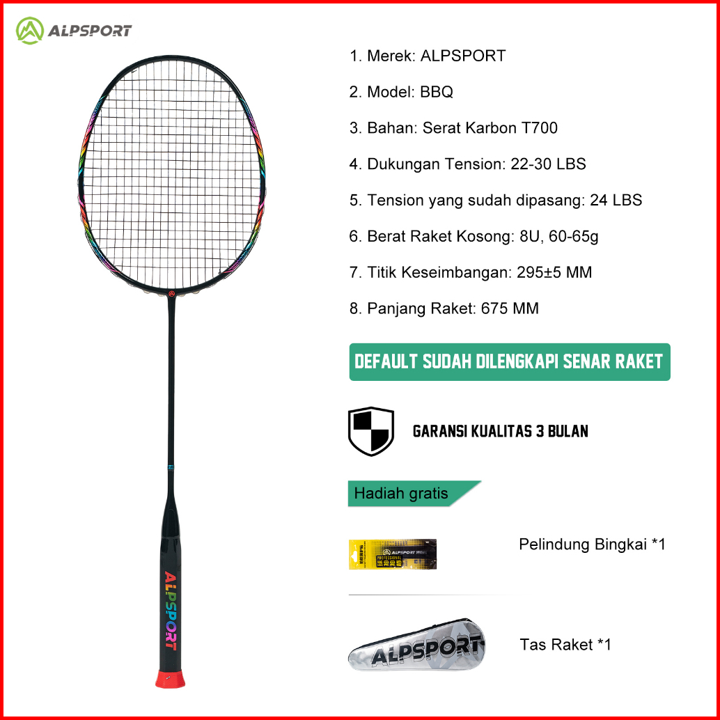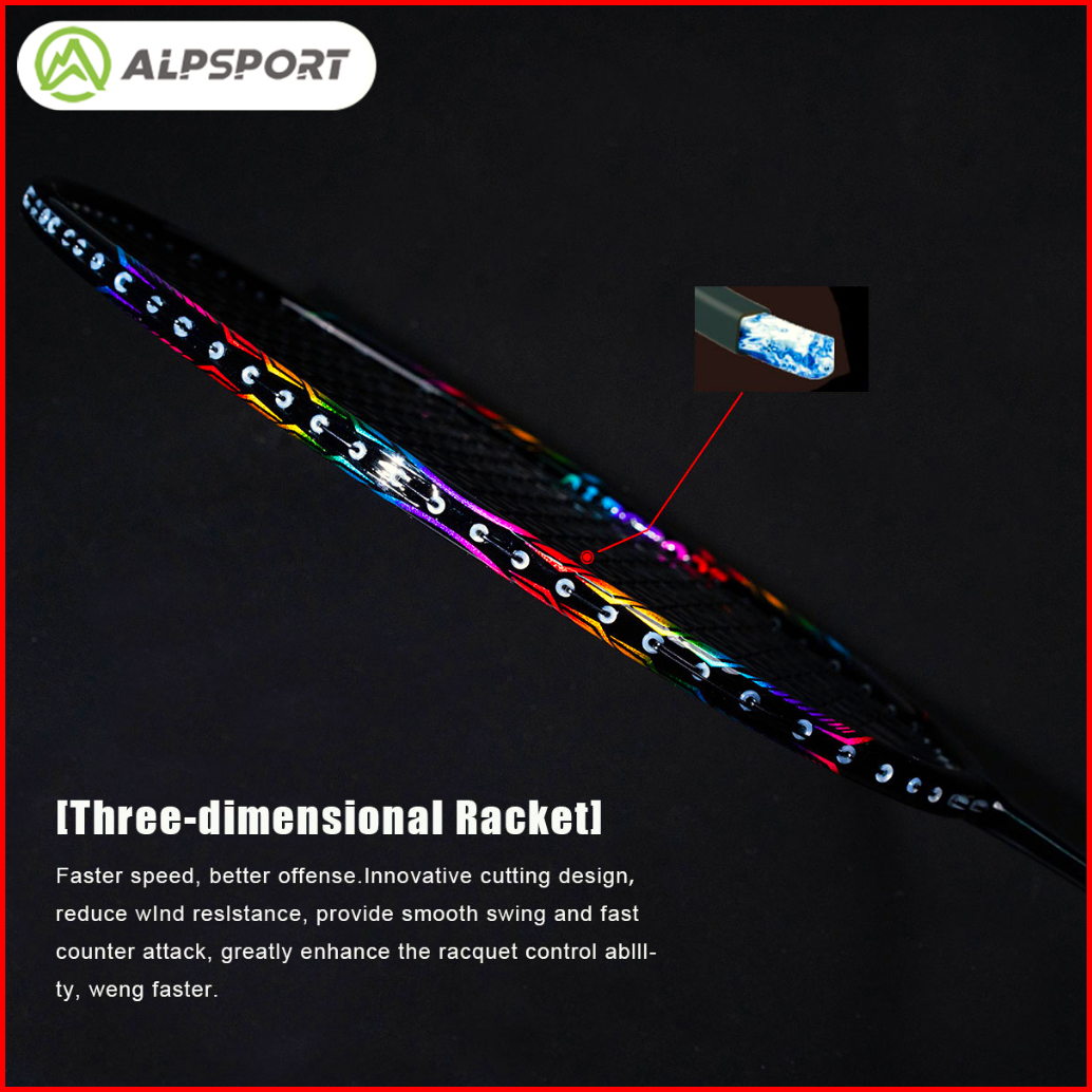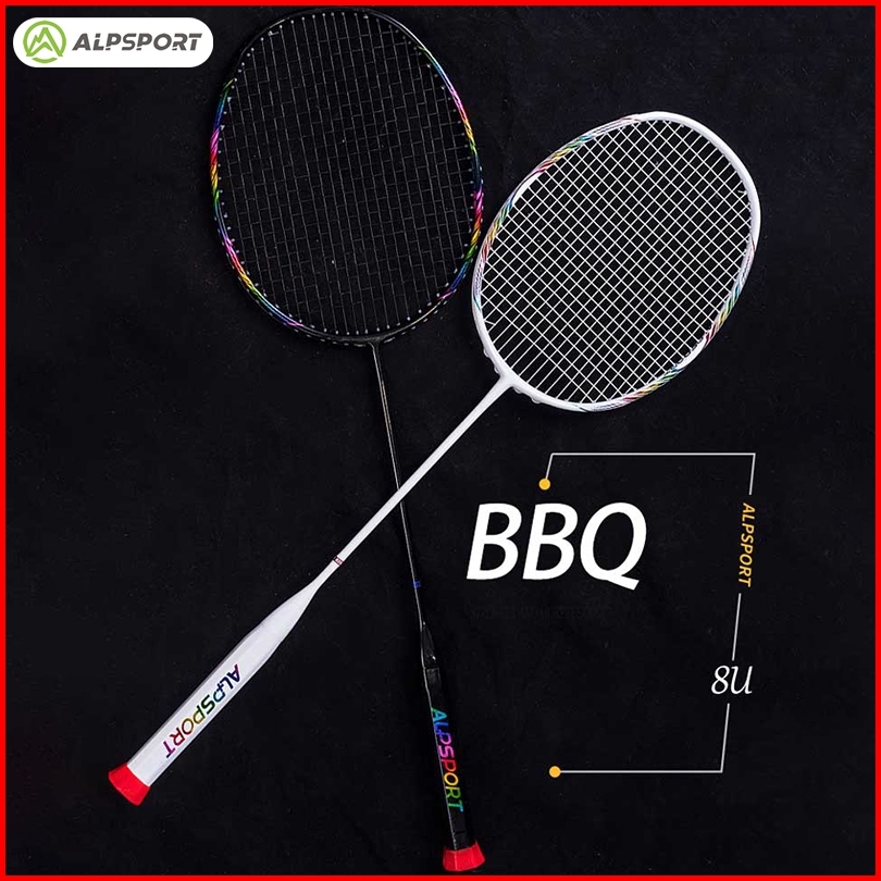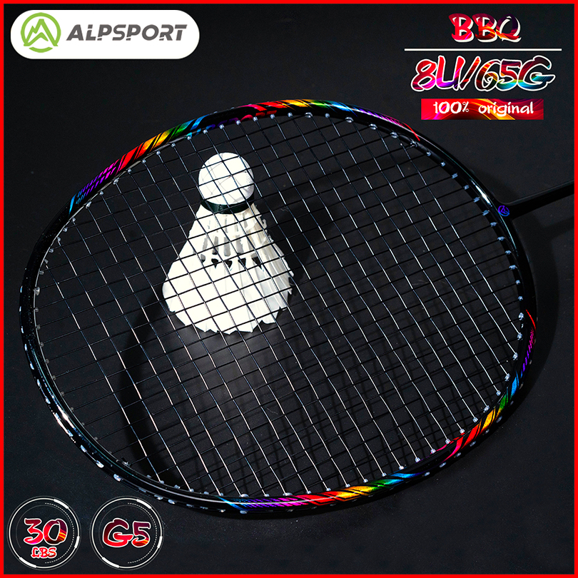 Alpsport Bbq2.0 Cincin Penyerap Guncangan Nilon Bingkai Pelangi 8u G5 30lbs Raket Bulutangkis Ofensif Yang Ringan Hitam