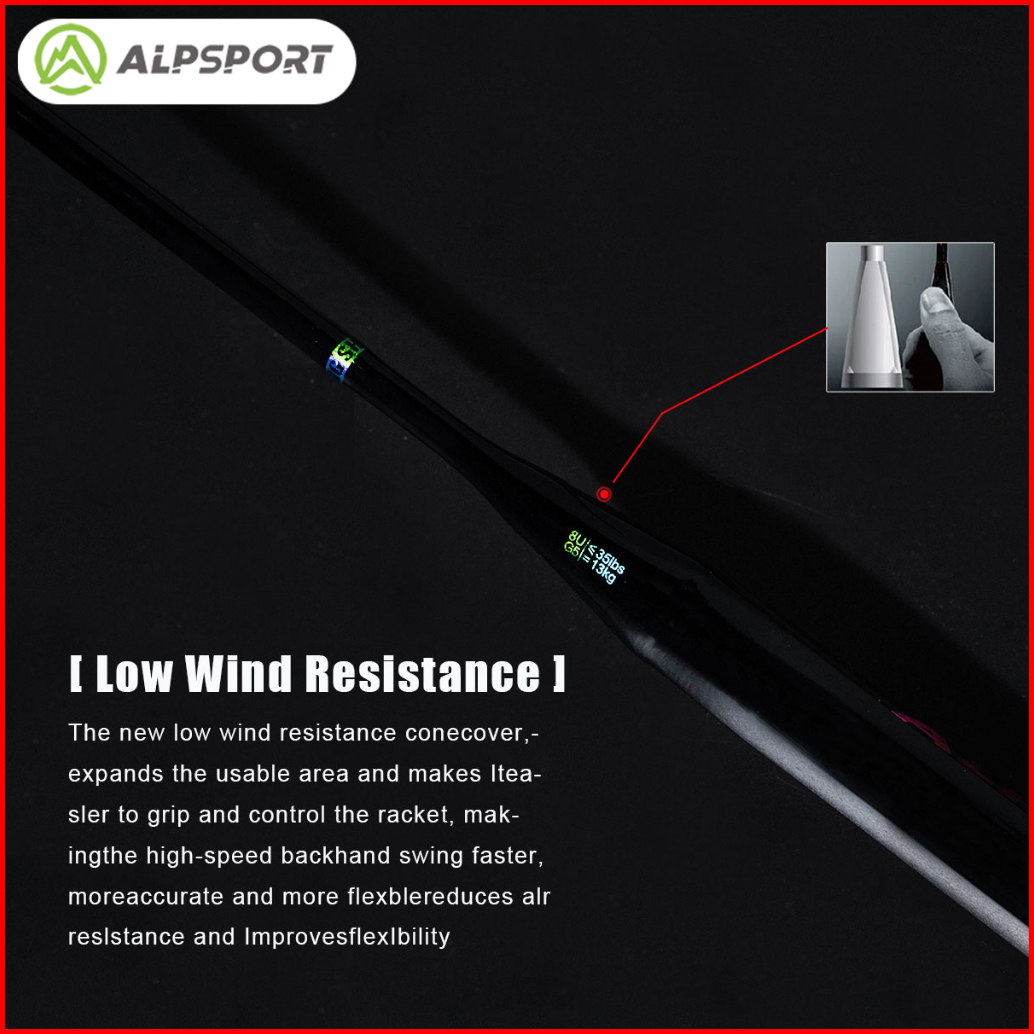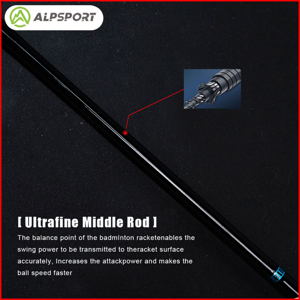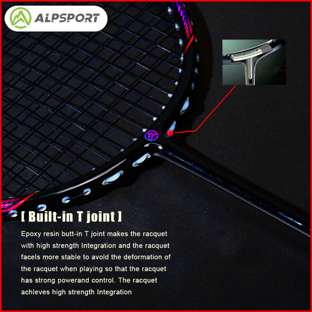 Alpsport Bbq2.0 Cincin Penyerap Guncangan Nilon Bingkai Pelangi 8u G5 30lbs Raket Bulutangkis Ofensif Yang Ringan Hitam