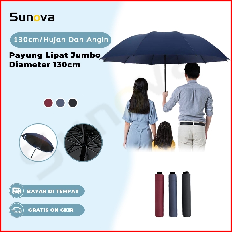 Sunova Payung Lipat Besar Jumbo Diameter 130cm Kualitas Tinggi Khusus Payung Tahan Angin Yang
