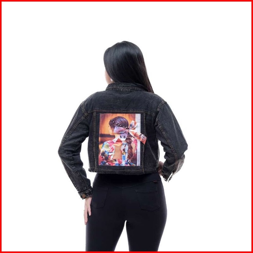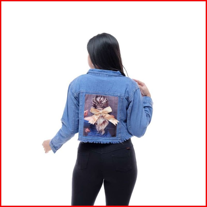 Jaket Jeans Crop Rawis Pita Belakang Ld 120 Oversize
