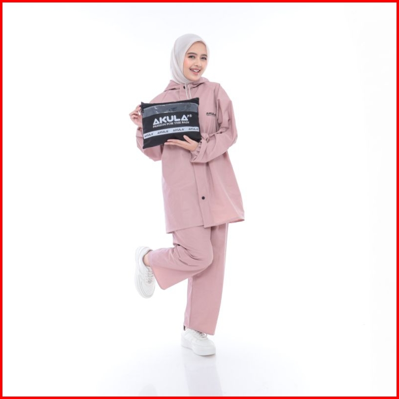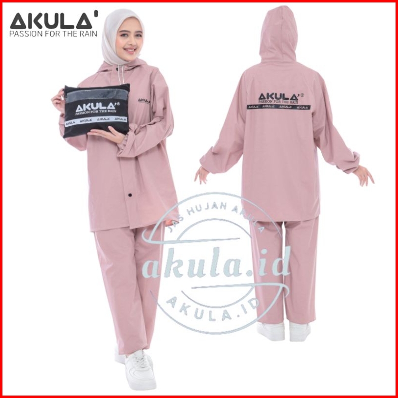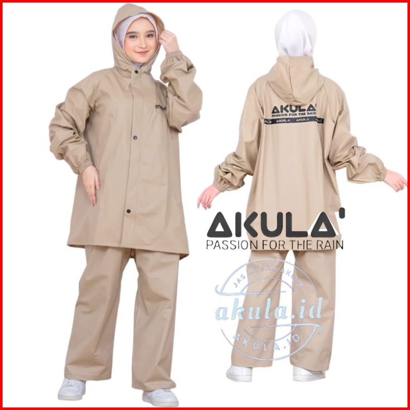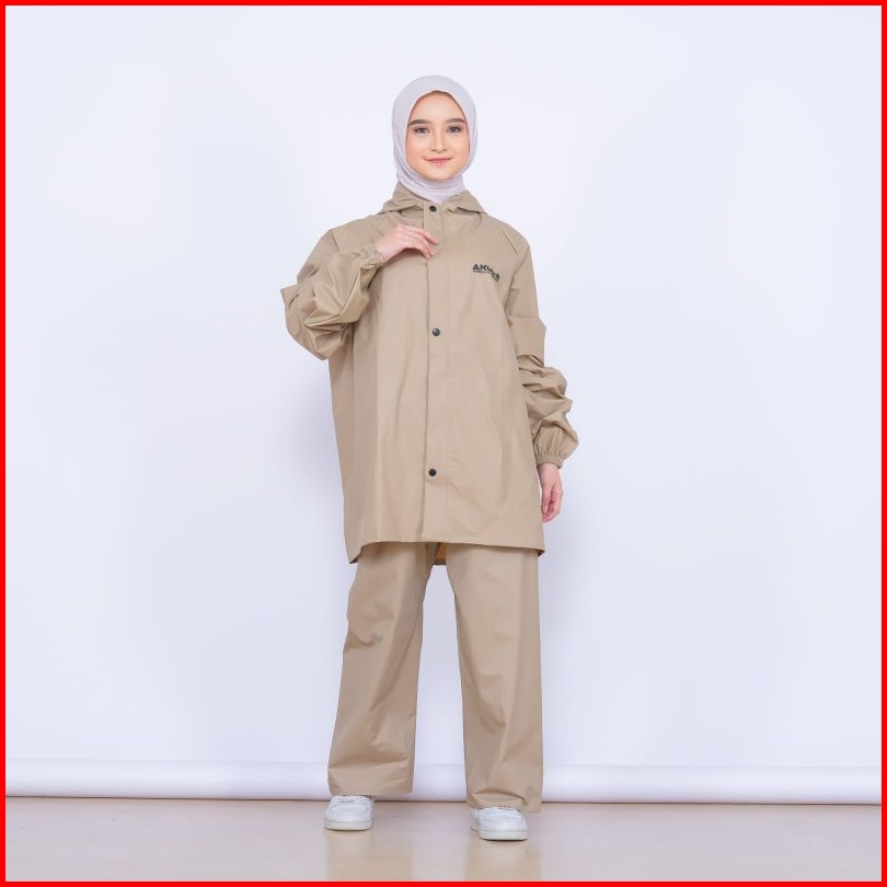 Akula Jas Hujan Stelan Pria Wanita Original Bahan Pvc Anti Rembes Mocca