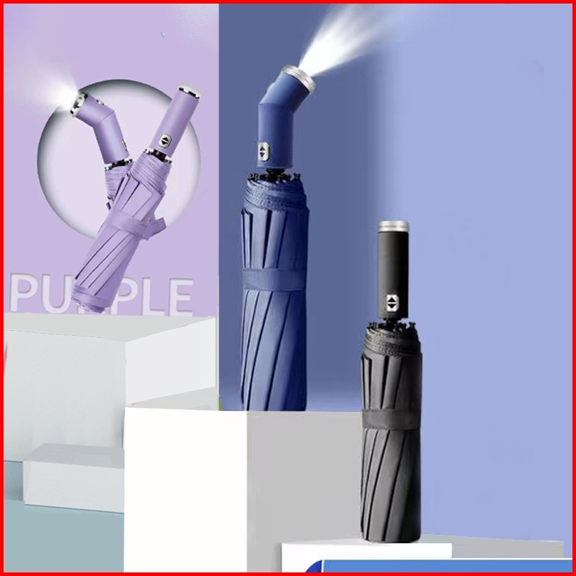 Payung Lipat Otomatis Premium Led Anti 10 Rangka Besi Vinyl Hitam Anti Uv