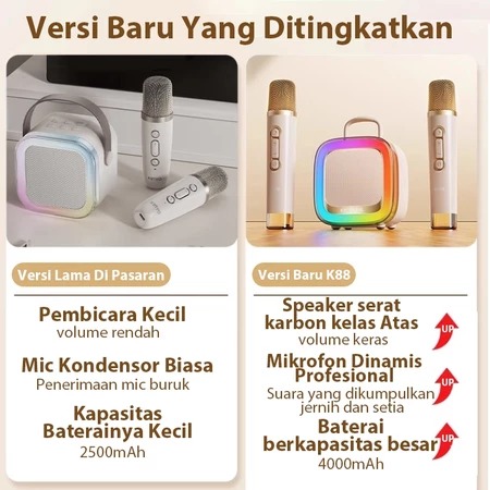 KINGLUCKY K88 SPEAKER KARAOKE 2MIC 1SET BLUETOOTH 5.4 MINI PORTABLE WIRELESS RGB KARAOKE HOME SET SPEAKER MINI