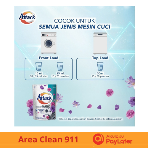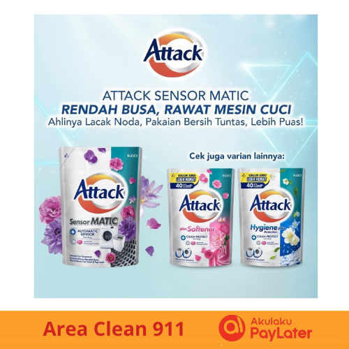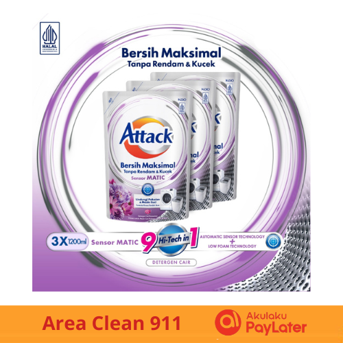 [ 3 Pack ] Deterjen Cair Semua Mesin Cuci Attack Sensor Matic 1200mL x 3