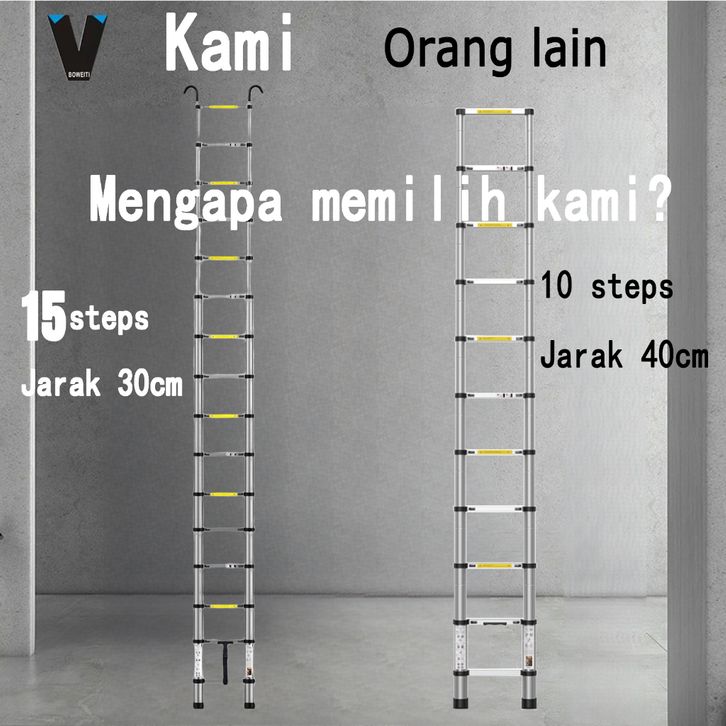 BOWEITI TANGGA TELESKOPIK ALUMINIUM 2.6M/3.2M/3.8M/4.4M/4.7M/5M/5.4M/6.2M/8M TANGGA TELESKOPIK PADUAN ALUMINIUM