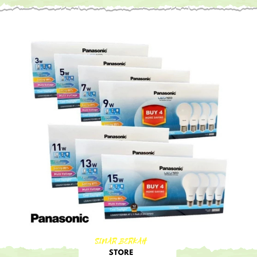 1 Pack 4 Pcs Panasonic Led Bulb 3W 5W 7W 9W 11W 13W 15Watt E27 6500K Putih