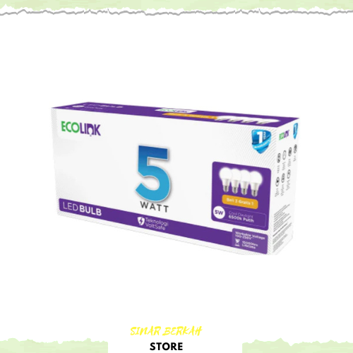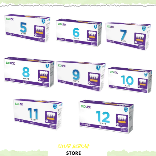 Paket isi 4 Lampu LED Bulb Ecolink 5W 6W 7W 8W 9W 10W 11W 12W Putih