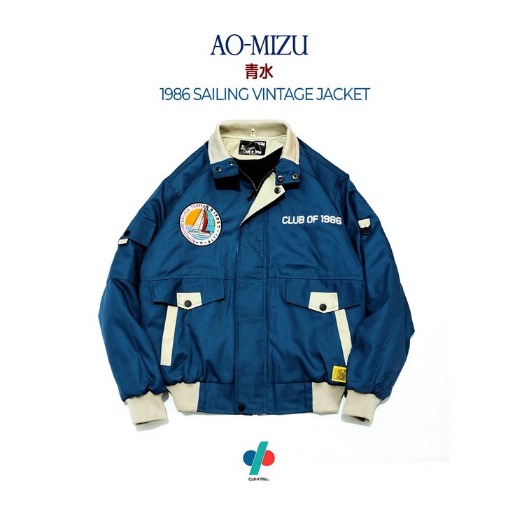 AOMIZU JAPAN CLUB of 1986 SAILING VINTAGE JACKET / Jaket Biru Oversize Retro Classic Vintage Jepang Unik / Bomber