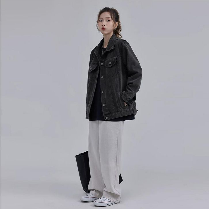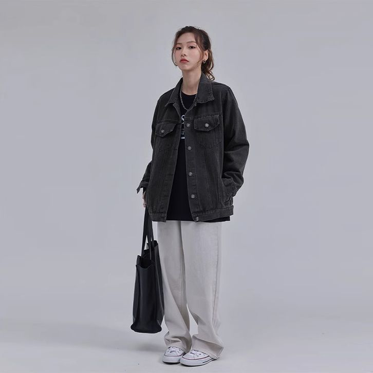 Alice Jaket-Jaket Denim Oversize Fashion Import Hitam ( Unisex )