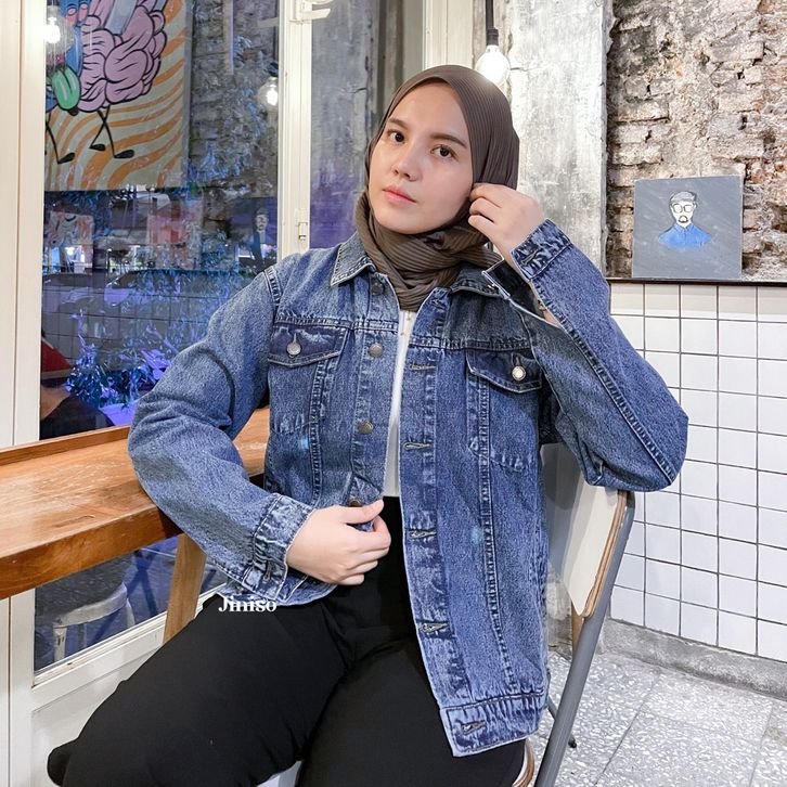 JINISO Jaket Jeans Oversize Vintage Blue Acid