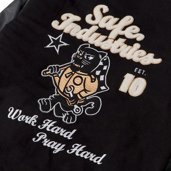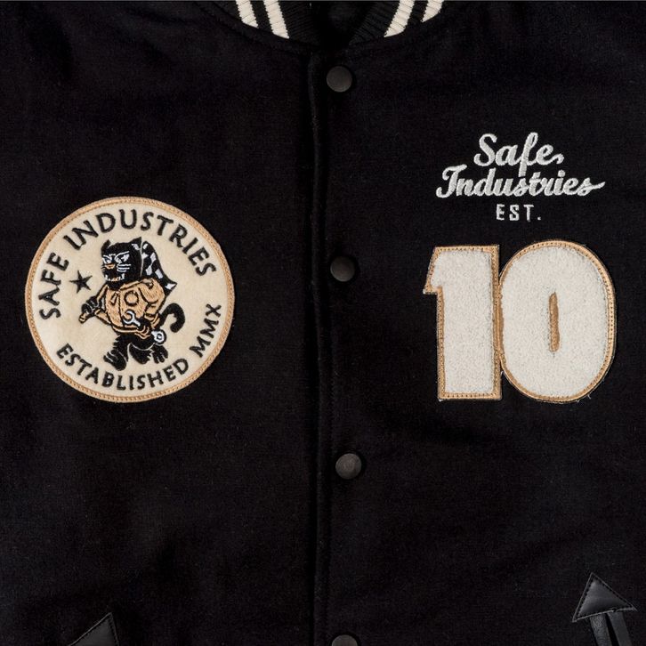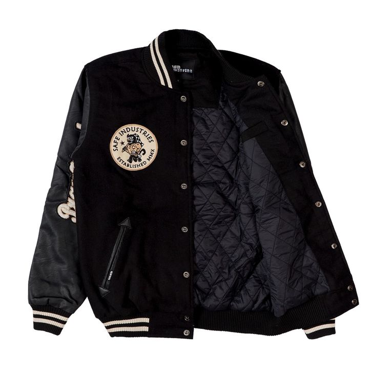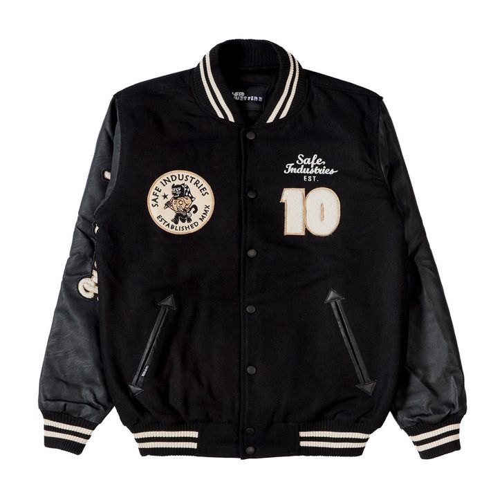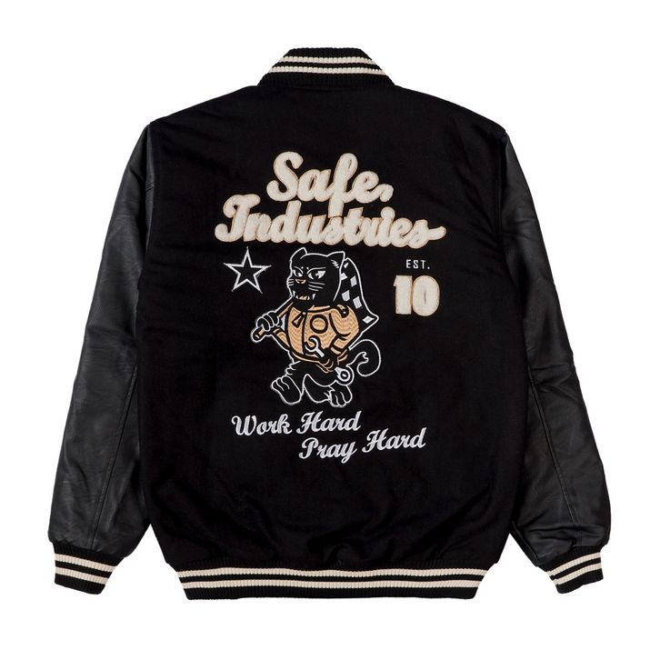 Safe Industries Vintage Varsity Jaket Pria Leather Black