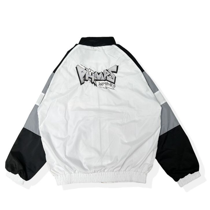 PHOMPPHIESS Jacket Retro Putih Strip Abumuda Jaket Vintage Pria Wanita