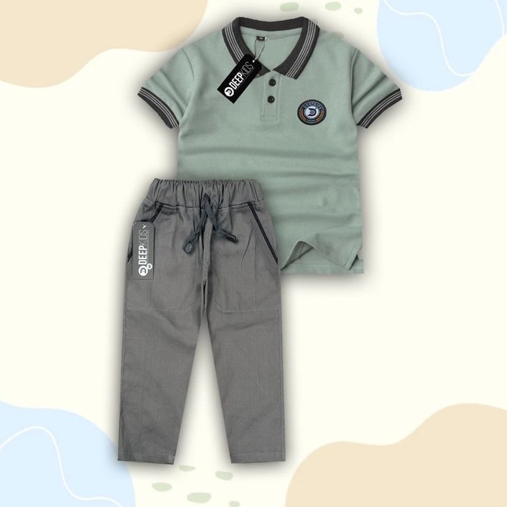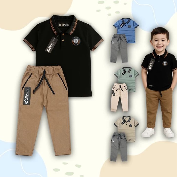 Setelan Kaos Kerah Polo Celana Chinos Panjang Set Anak Laki Laki 1-12 Tahun Pakaian Anak Laki Laki Fashion Anak Cowok