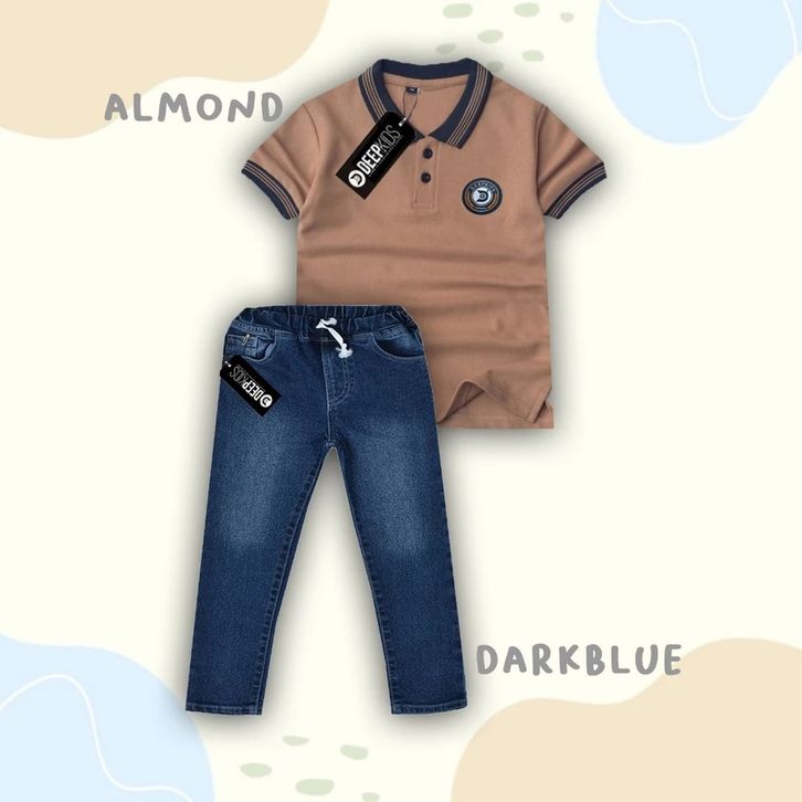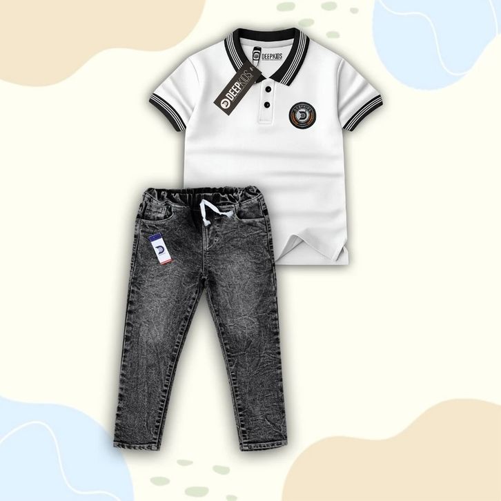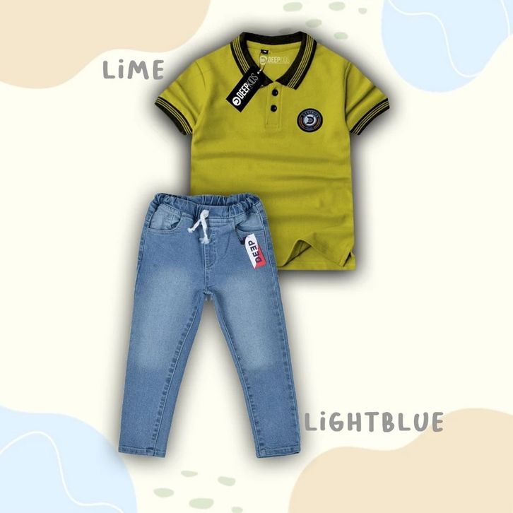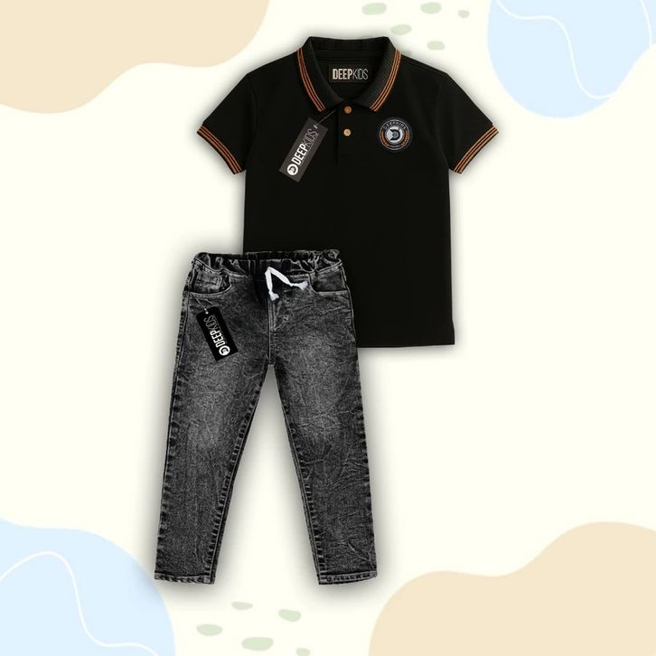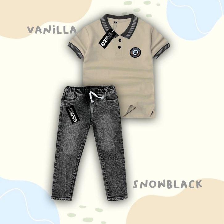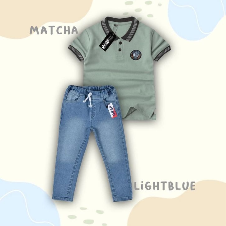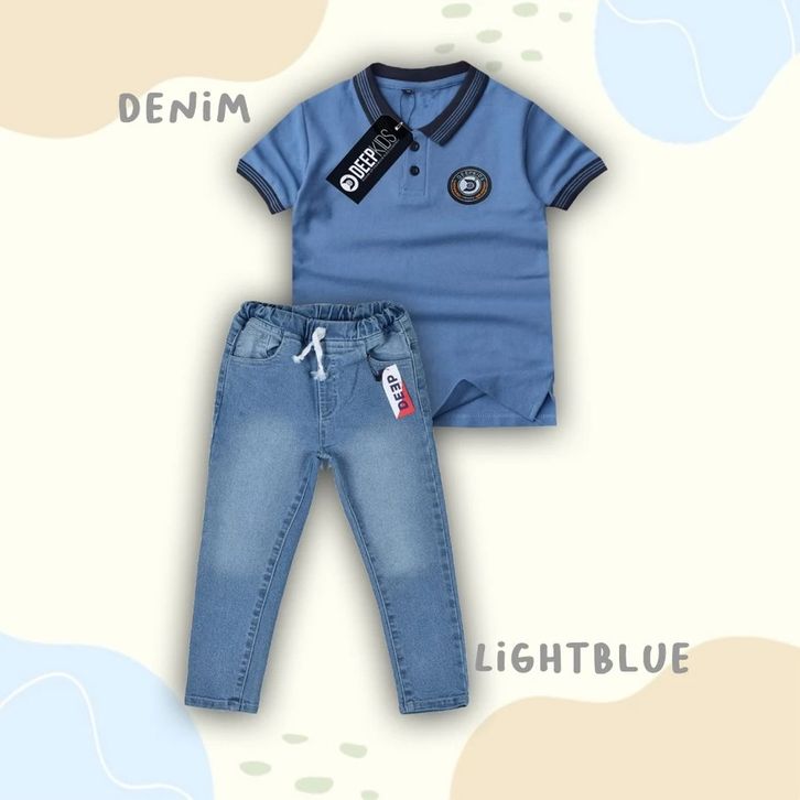 Setelan Celana Jeans Panjang Set Baju Polo Terbaru Setelan Anak Laki Laki 4-12 Tahun Pakaian Cowok