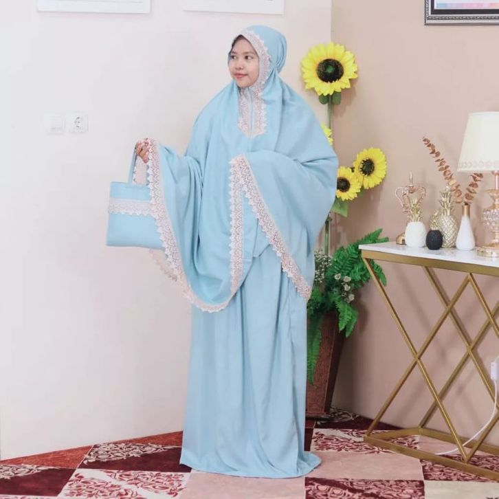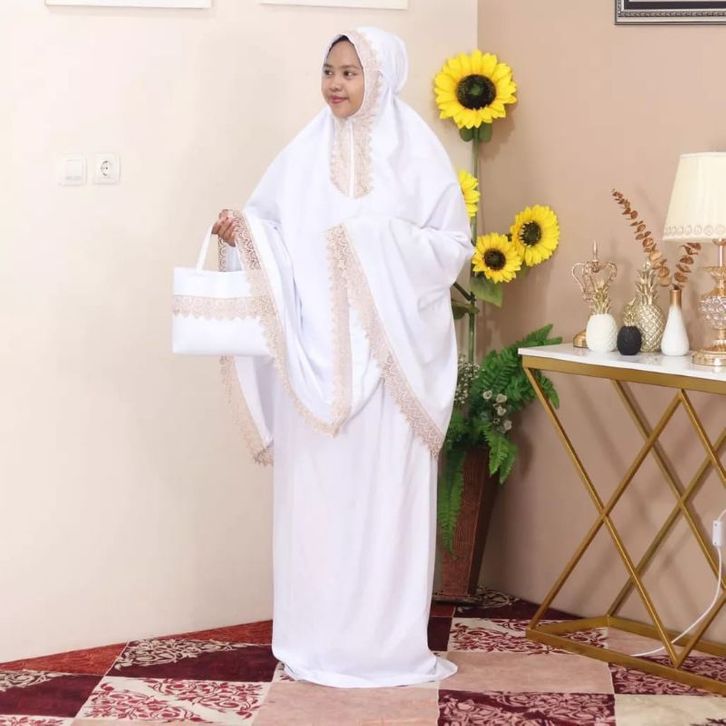 mukena dewasa katun premium jumbo traveling murah renda gifer mewah ada tas