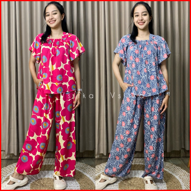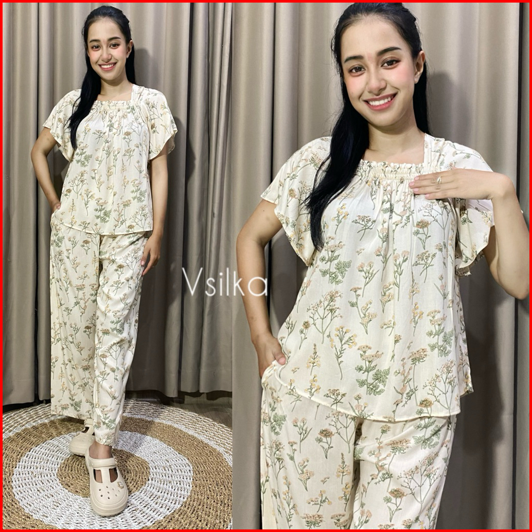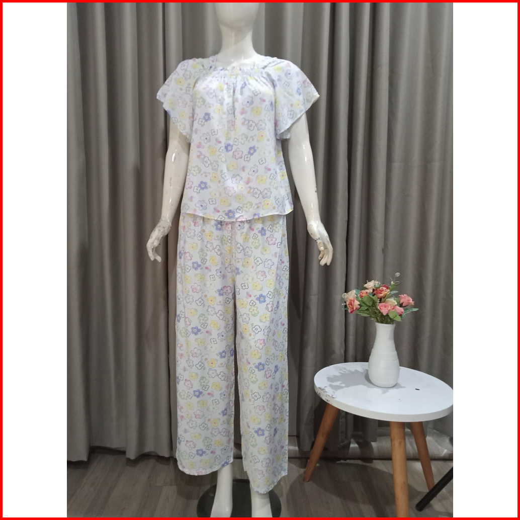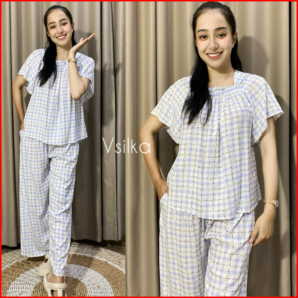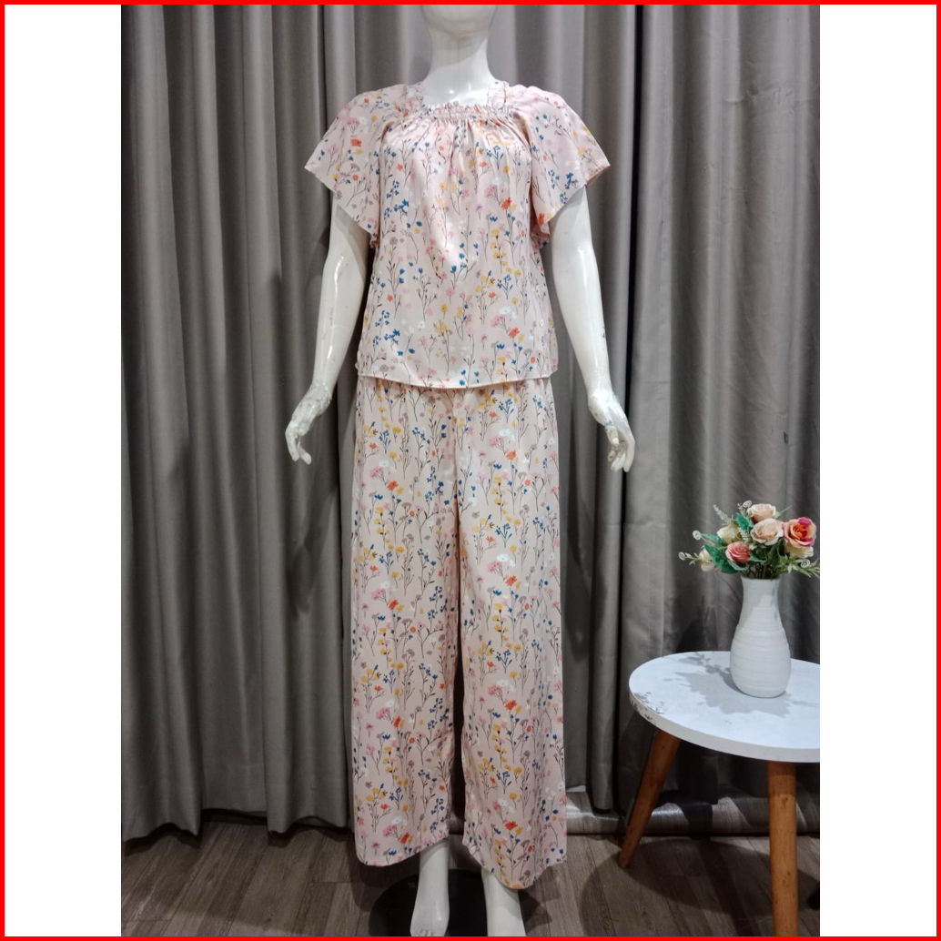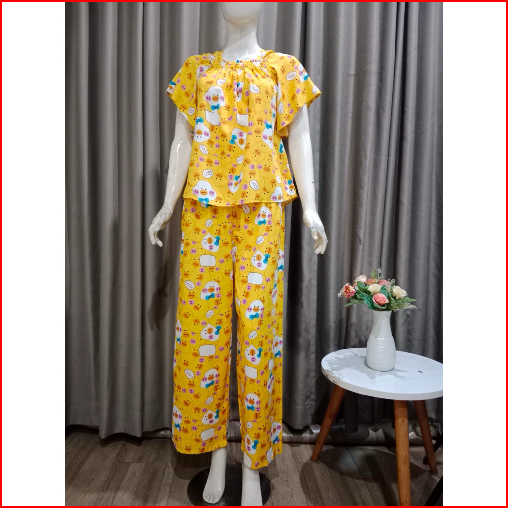 Set Baju Tidur Wanita Rayon Karet Dada Set Piyama Kerut Bumil Busui