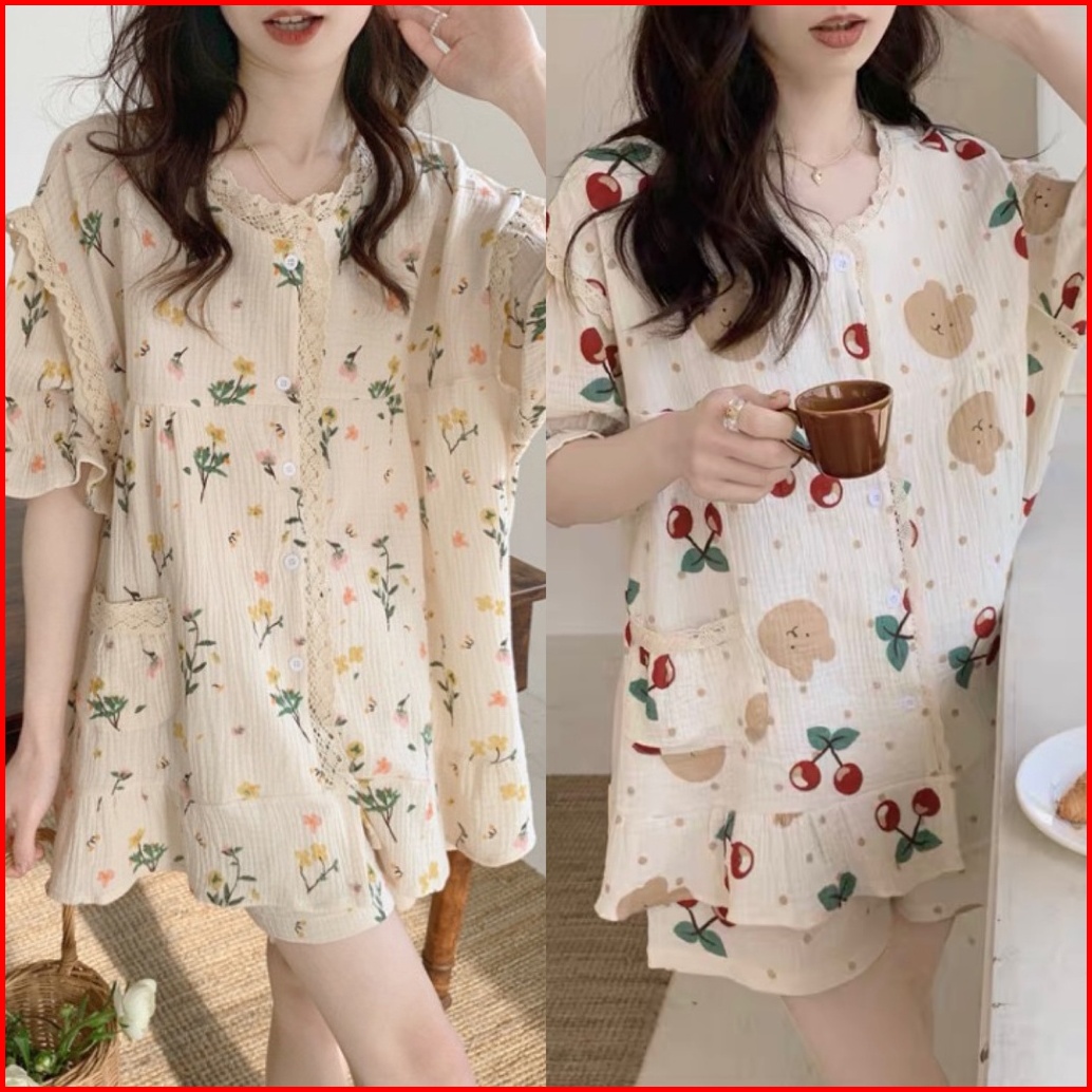 Baju Tidur Piyama Import Cute Korea Motif Kartun Lucu Baju Tidur Set Wanita Celana Pendek