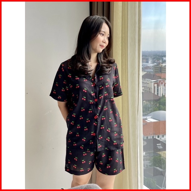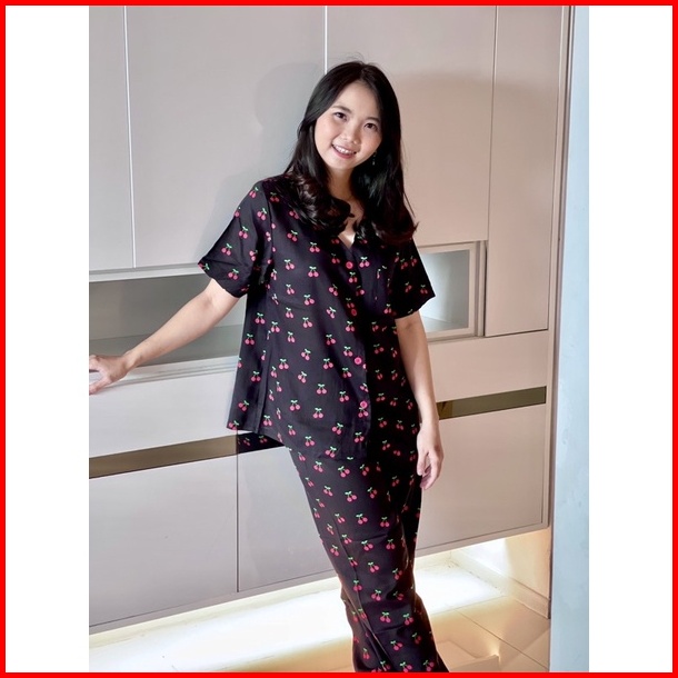 Size S-xxl Setelan Baju Tidur Piyama Wanita Rayon Premium Motif Cherry