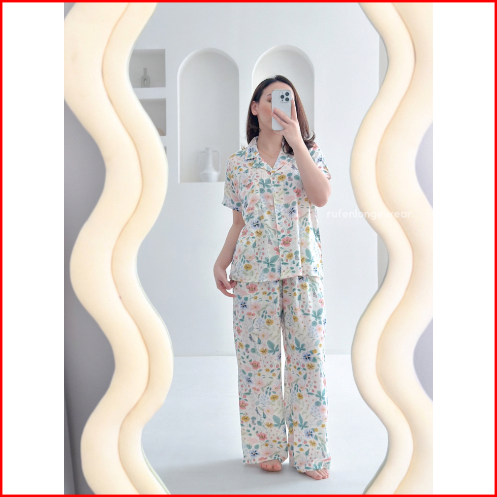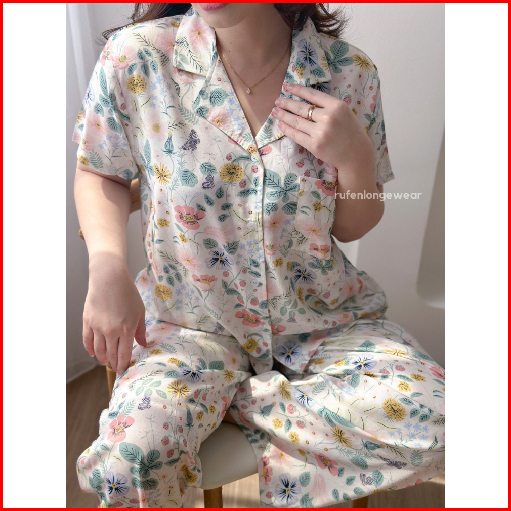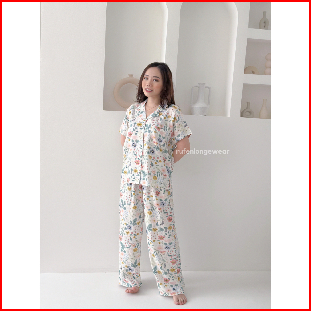 Rufen Setelan Busui Rayon Celana Pendek Panjang Bahan Rayon Motif Bunga
