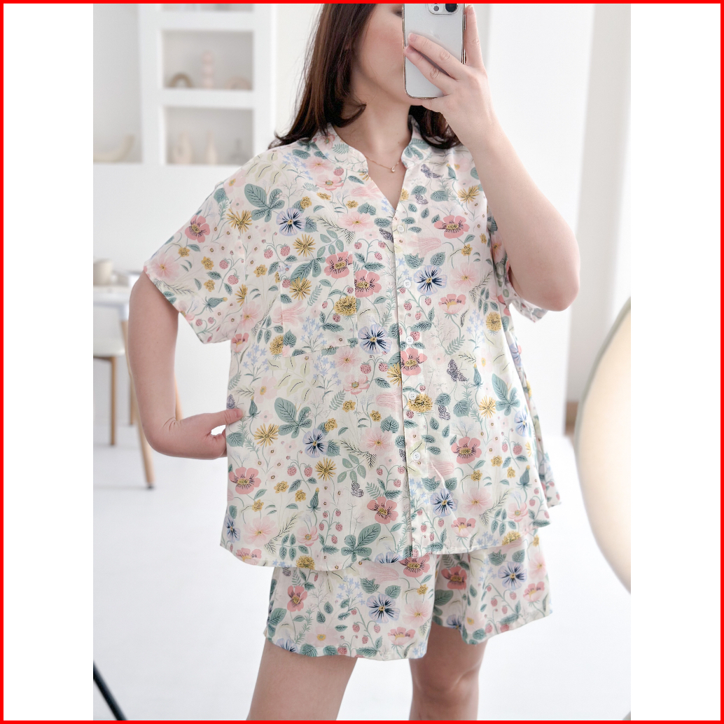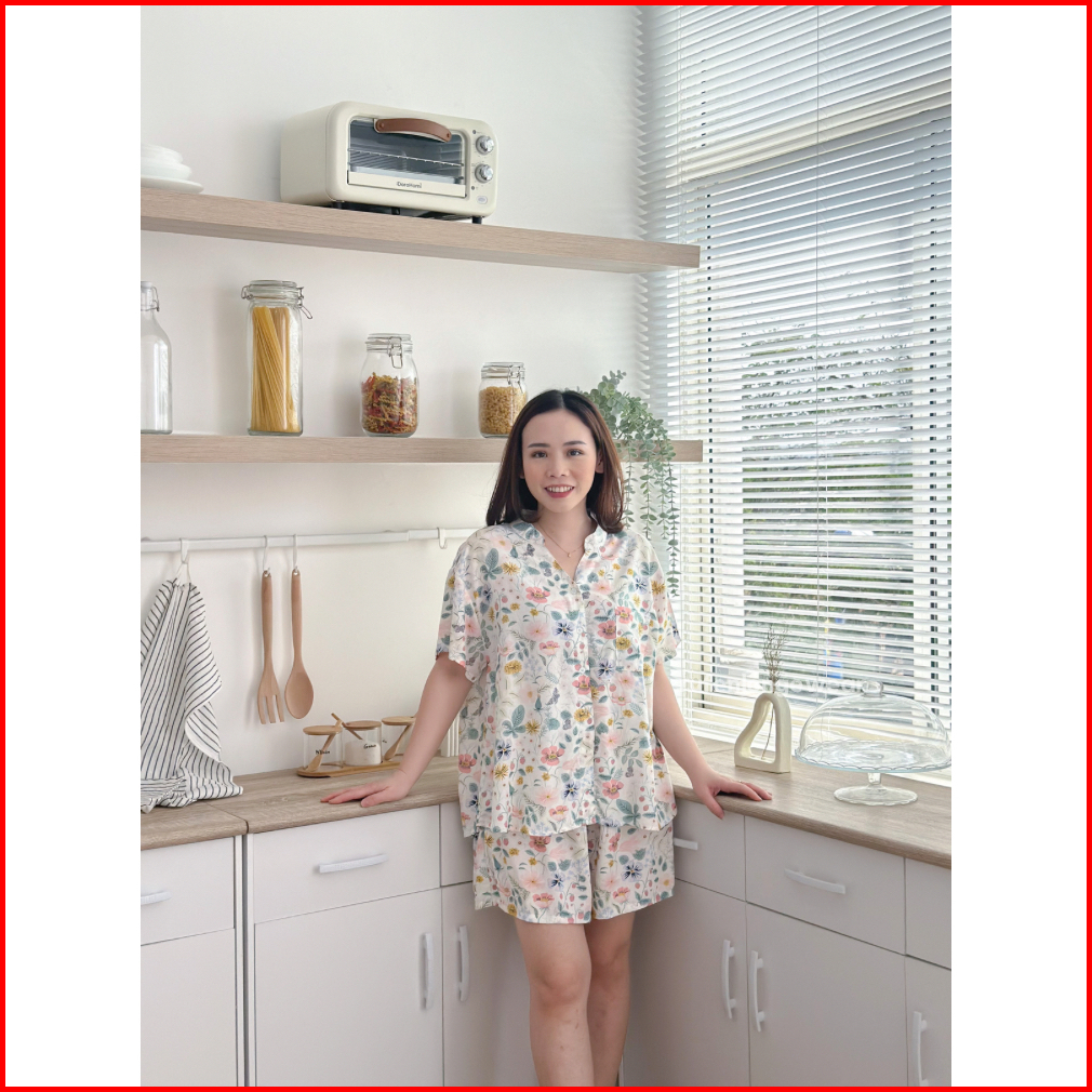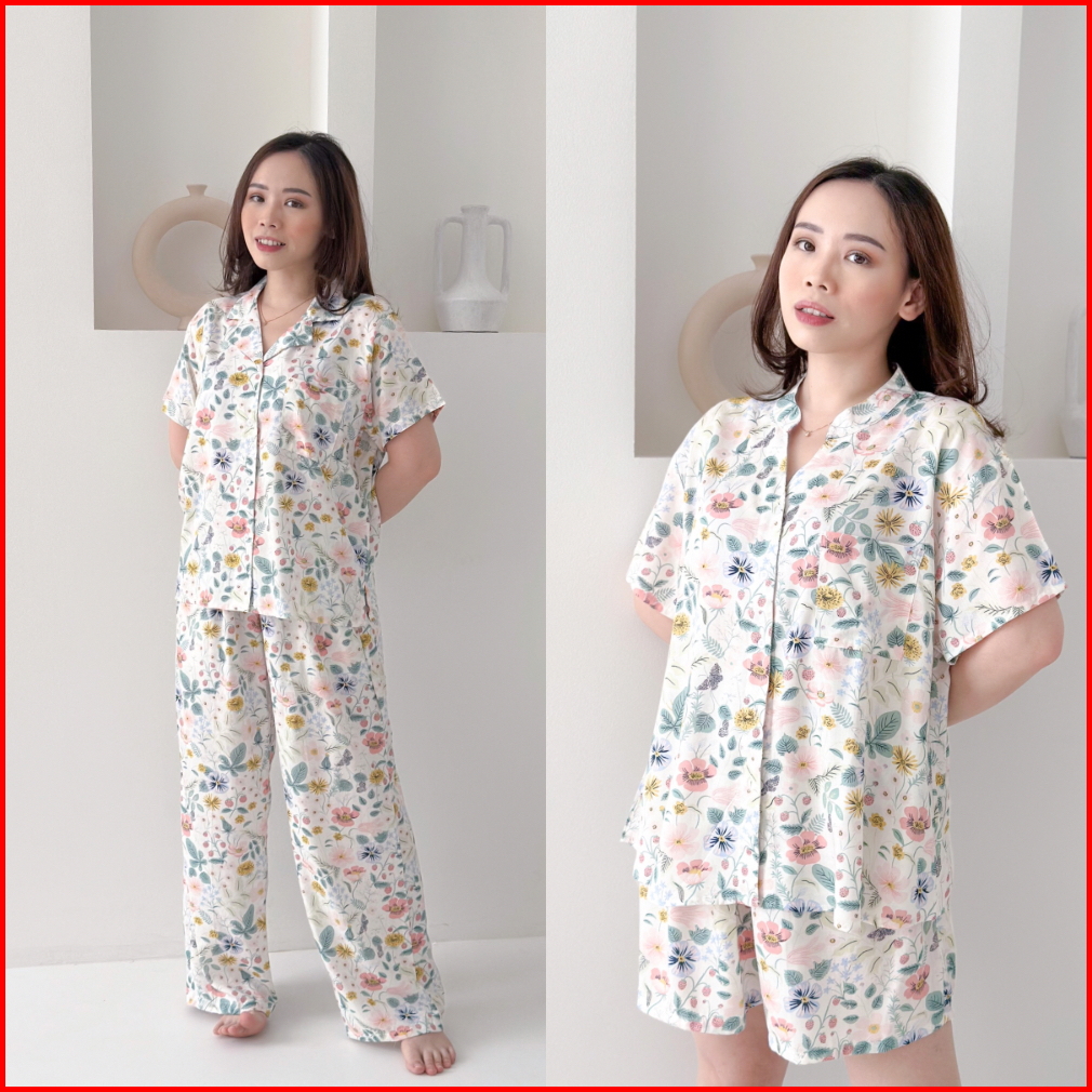 Rufen Setelan Busui Rayon Celana Pendek Panjang Bahan Rayon Motif Bunga
