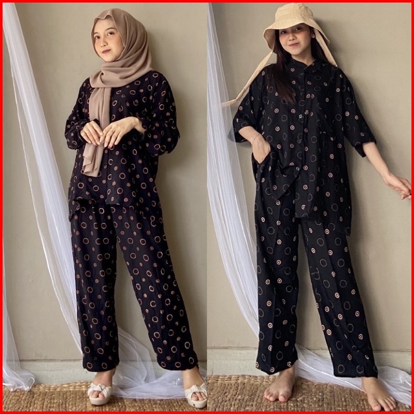 One Set Rayon Polka Ring - Piyama Rayon Pajamas Katun Rayon Premium Quality Set Piyama Wanita Ld 120 Setelan Tie Dye Set