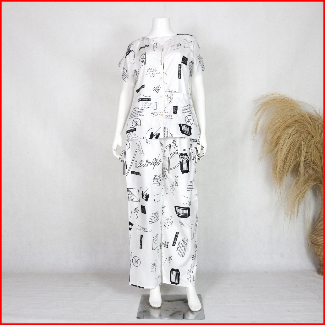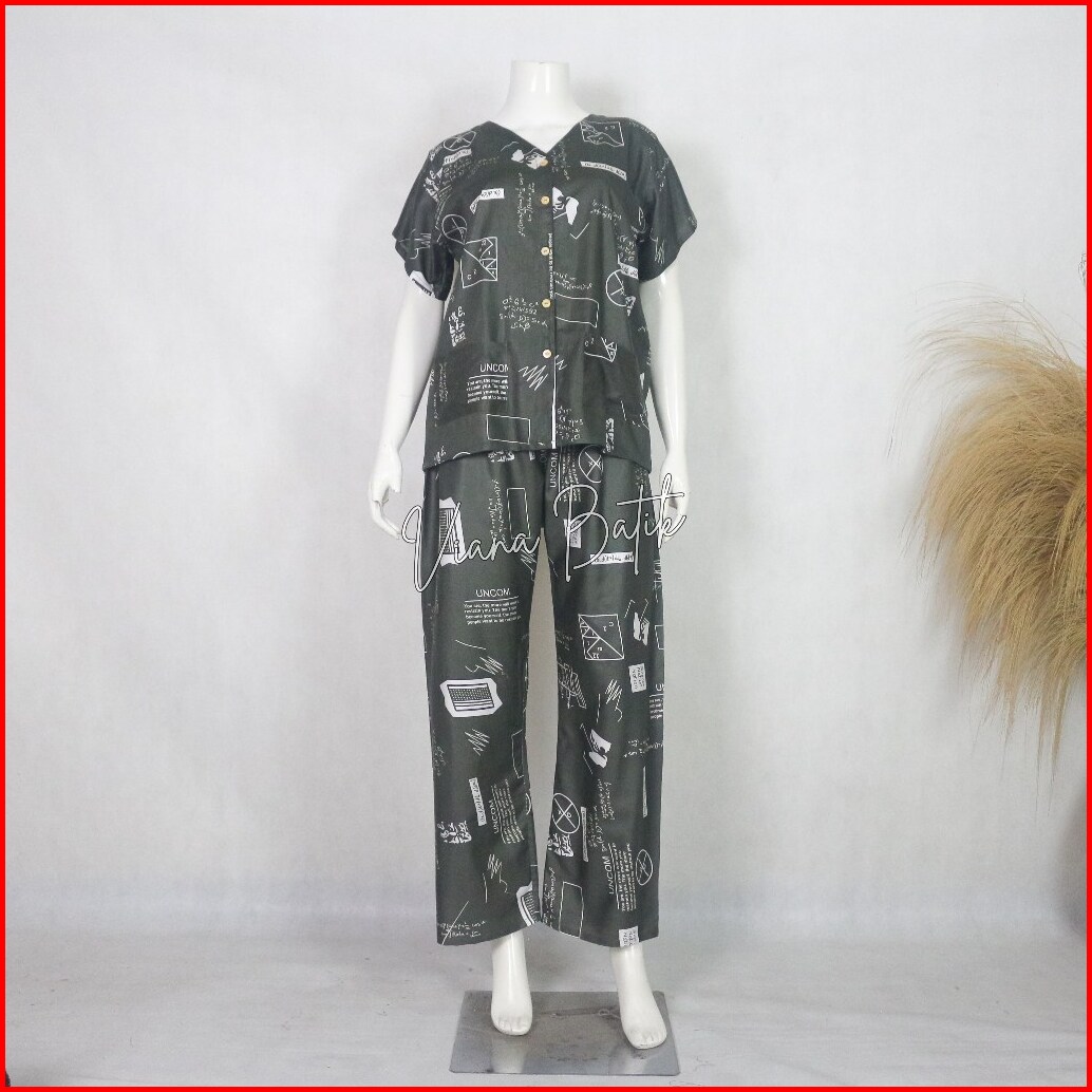Piyama Kancing Celana Panjang Kekininan Motif Unicorn Bahan Rayon Lembut Kerah V Neck