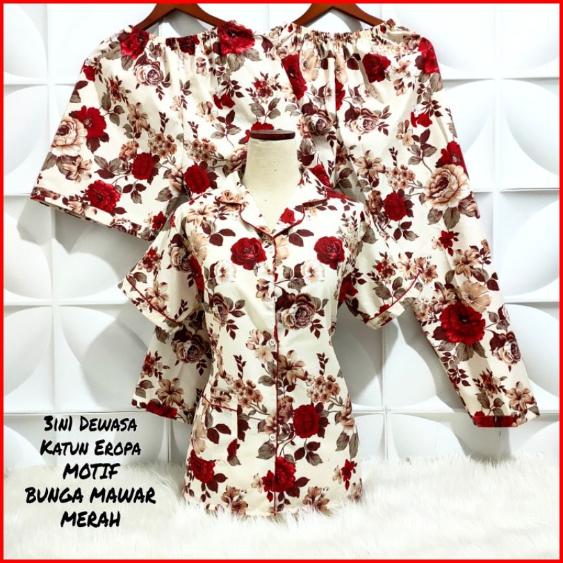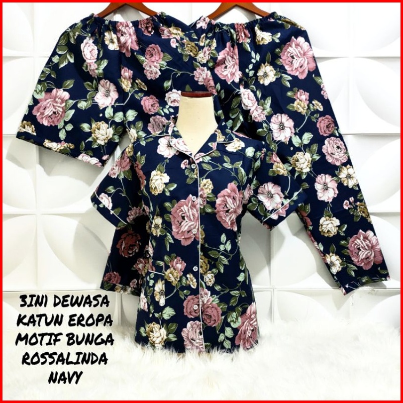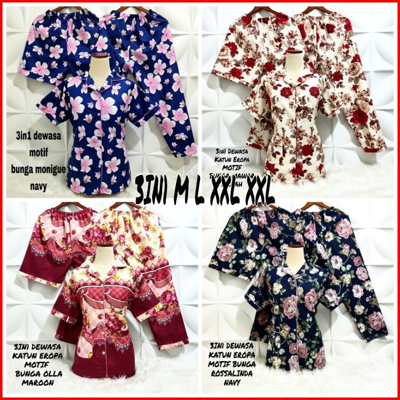 Piyama 3in1 Dewasa Motif Bunga Katun Eropa