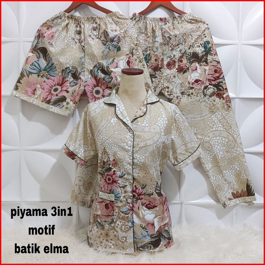 Piyama 3 In 1 Motif Bunga Katun Fit To Xl