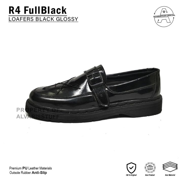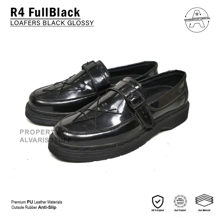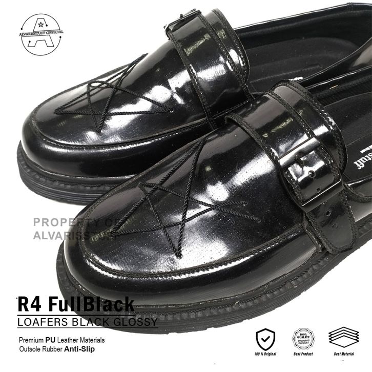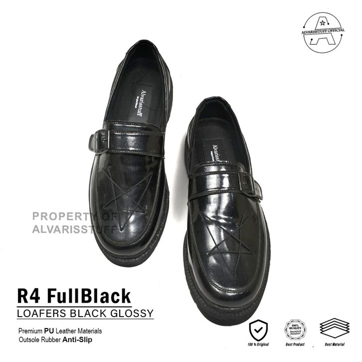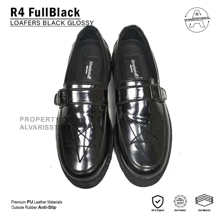 Alvarisstuff - R4 Fullblack Glossy Sepatu Penny Loafers Pria