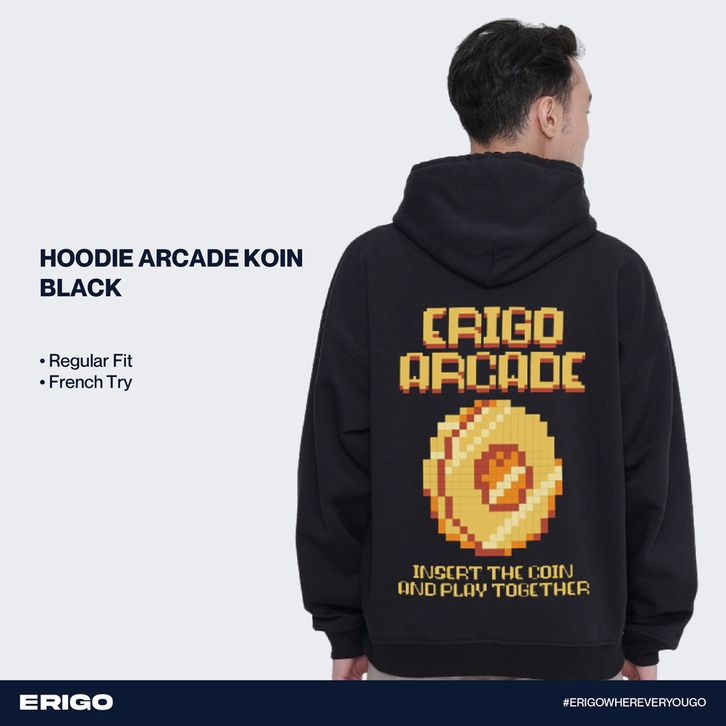 JAKET HOODIE PRIA ERIGO HOODIE DTF SERIES ARCADE COIN BLACK VOL 6 TERBARU