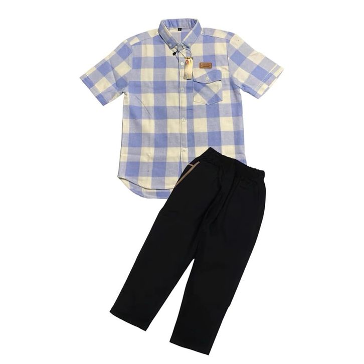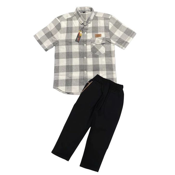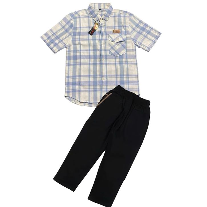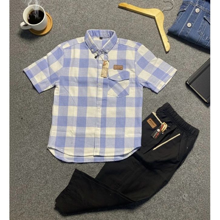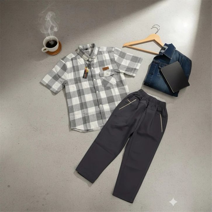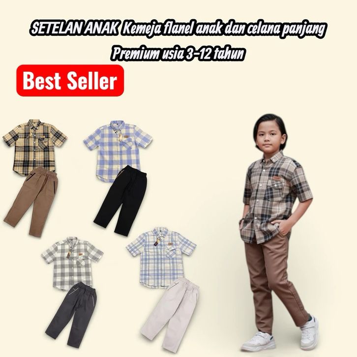 Setelan Anak Kemeja Flanel Pendek Dan Celana Chinos Panjang Premium Set Baju Anak Laki Laki 3-12 Tahun Terbaru