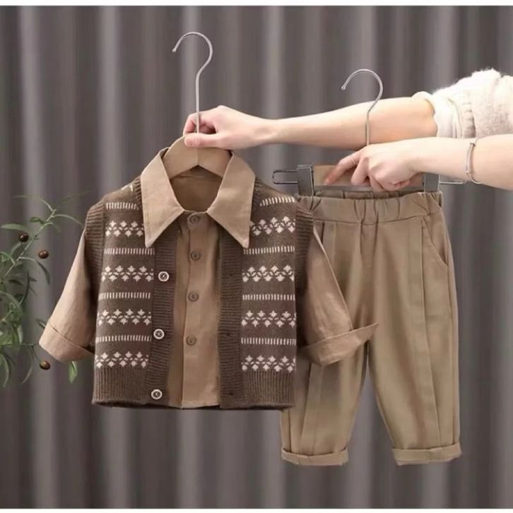 Setelan Rajut Dan Celana Chinos Pakaian Anak Cowok Setelana Anak Laki Laki 1-5 Tahun Fashion Anak Laki Laki Import