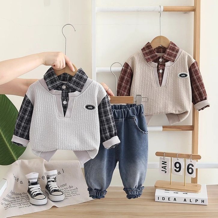 Setelan Anak Laki Laki 1 - 6 Tahun Outfit Anak Atasan Lengan Panjang Dan Celana Jeans Benhil Fashion Anak Cowok Terbaru