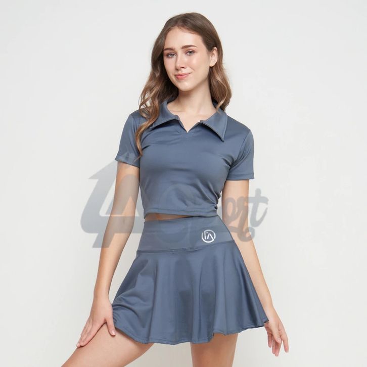 Set Olahraga Wanita Crop Kerah Set Tenis Badminton Golf Senam Wanita Set Zumba Wanita Set Aerobic Wanita Outfit Olahraga