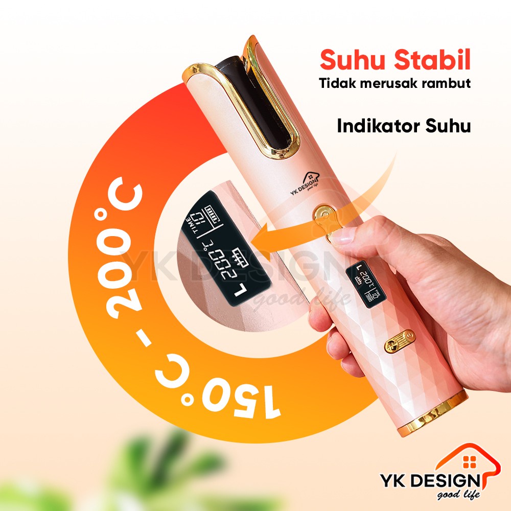 Catokan Pengriting Rambut YK-1623 Tampilan Suhu Panas Cepat Pemutaran Otomatis USB TYPE-C