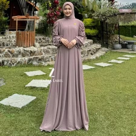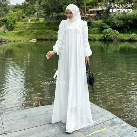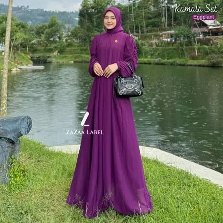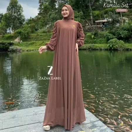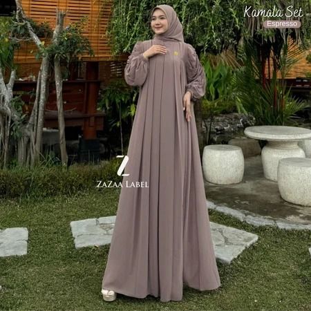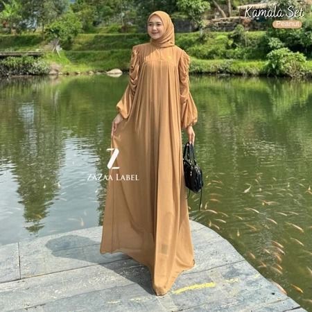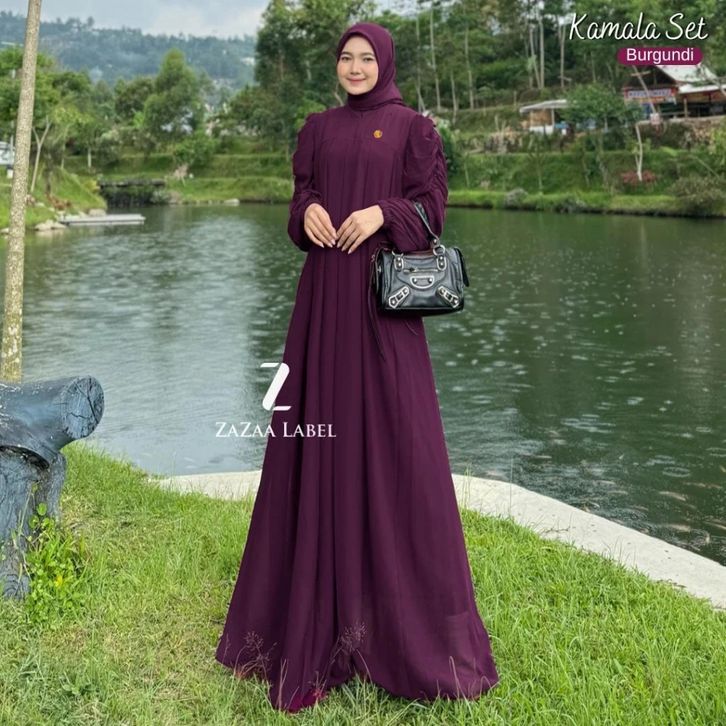 GAMIS WANITA KEKINIAN ZAZAA LABEL - KAMALA SET GAMIS HIJAB POLOSAN BAHAN CERUTY BUSANA MUSLIM WANITA PESTA MEWAH