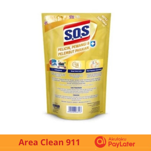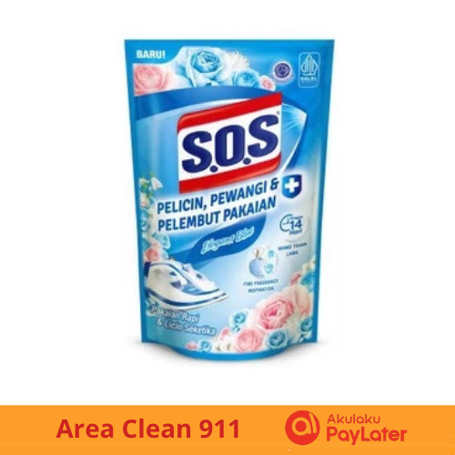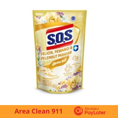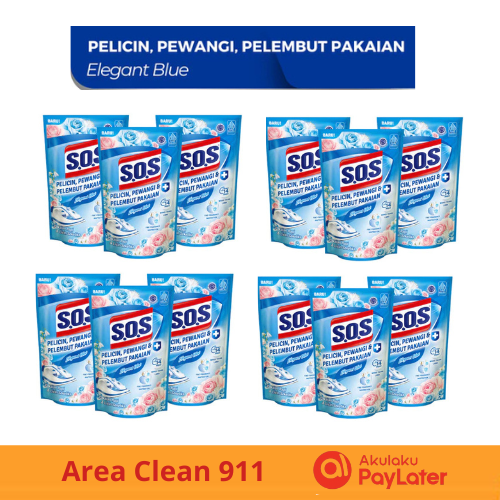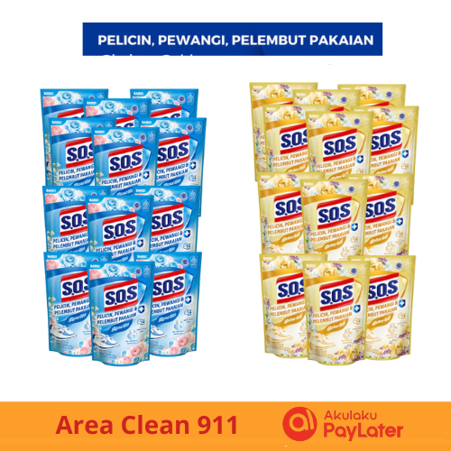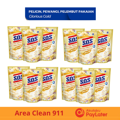 12 Pcs Pelicin Pewangi Pakaian SOS Refill Glorious Gold & Elegant Blue 300 ml x 12