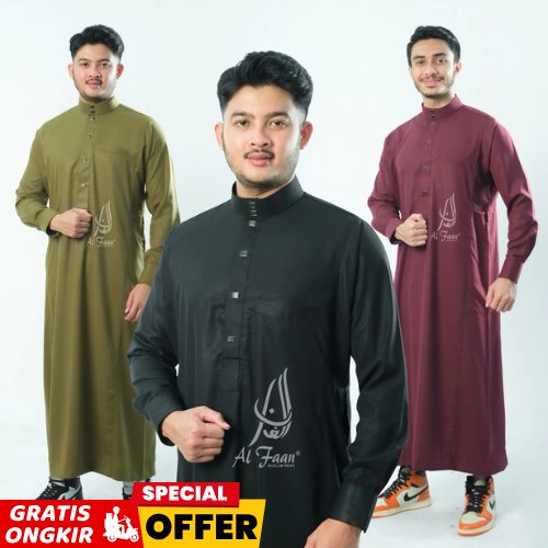 Jubah Pria Dewasa Hramain Gamis Mewah Bordir Hitam Putih Saudi Premium Muslim Polos Murah