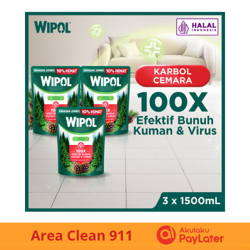 [ 3 Pack ] Pembersih Lantai Cairan Wipol Karbol Cemara Disinfektan Teruji Dermatologis 1500 mL x 3