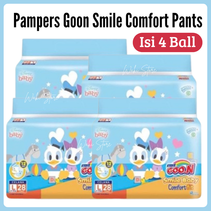 Pampers Goon Smile Comfort Pants Kemasan Standar S32, M30, L28, XL26, XXL24 Popok Dewasa Isi 4 ball Free Ongkir