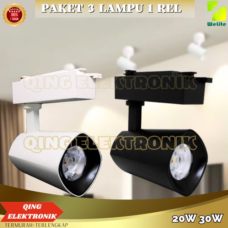 Paket Lampu Sorot Track LED 20W 3 Lampu 1 Rel Tracklight Spotlight Welite Garansi Original Ready stock