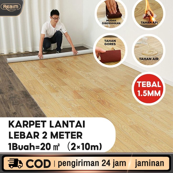 Reaim Karpet Lantai Vinyl Gulungan Tebal 1.5 Mm Lebar 2M X 5M /10M Gulungan Tebal Sticker Lantai
