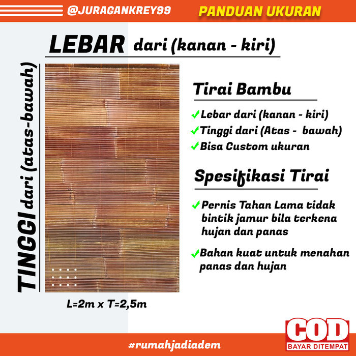 TIRAY BAMBU KREY OUTDOOR TIRAI KREI UKURAN 2X2M BERHADIAH SUVENIR - POLOS, 1X1M