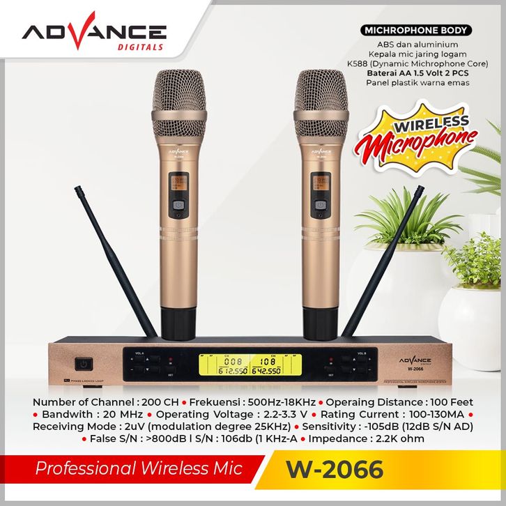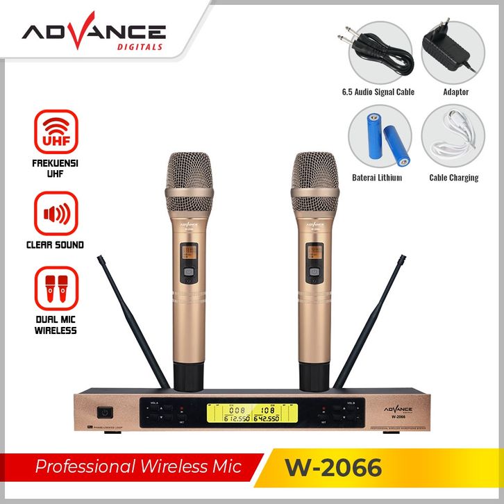 Advance Mic W-2066 / W2066 Wireless Profesional Microphone Double Premium Original Gold Garansi 1 tahun