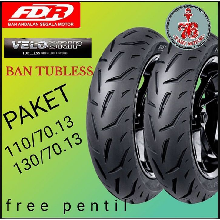 PAKET BAN TUBELES FDR VELO GRIP 110/70.13 DAN 130/70.13 FREE PENTIL