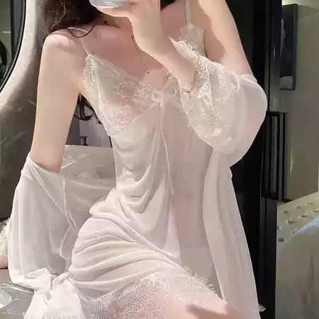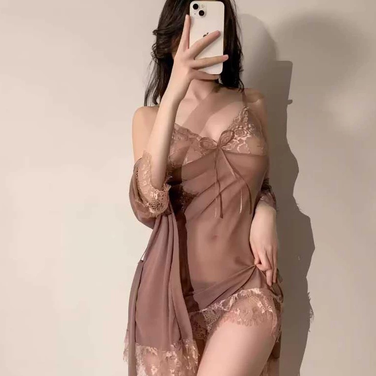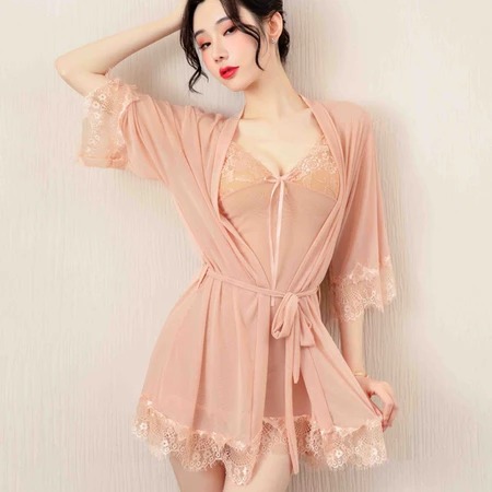 PINKY ONE SET (DRESS ,CD & KIMONO) LINGERIE SEXY LINGERIE SEXY TRANSPARENT RENDA BABYDOLL BAJU TIDUR WANITA LINGERIE