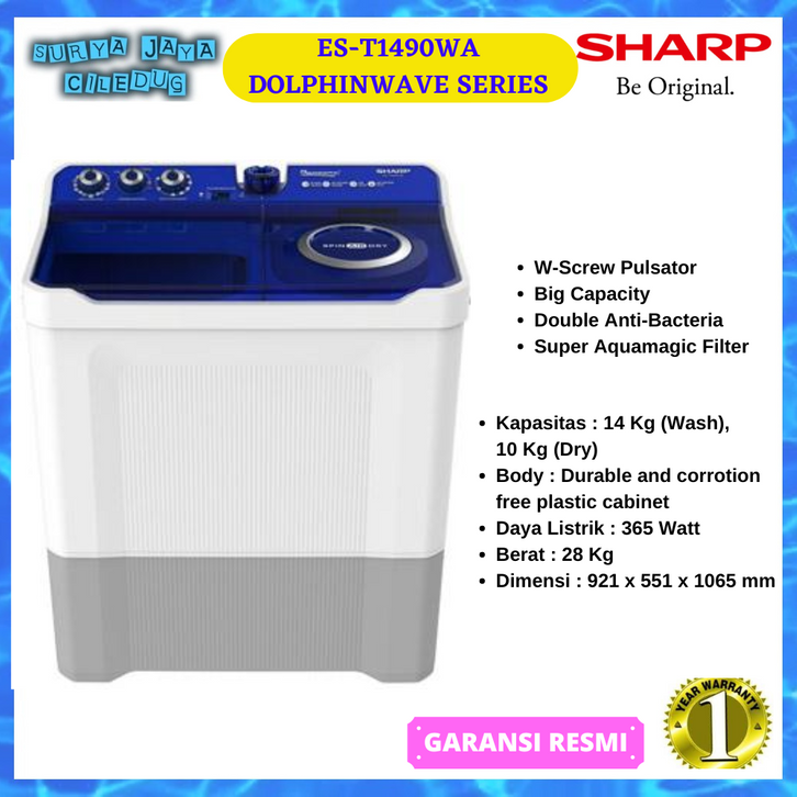 MESIN CUCI 2 TABUNG SHARP ES-T1490WA|14 KG PENGIRIMAN SE-JAWA