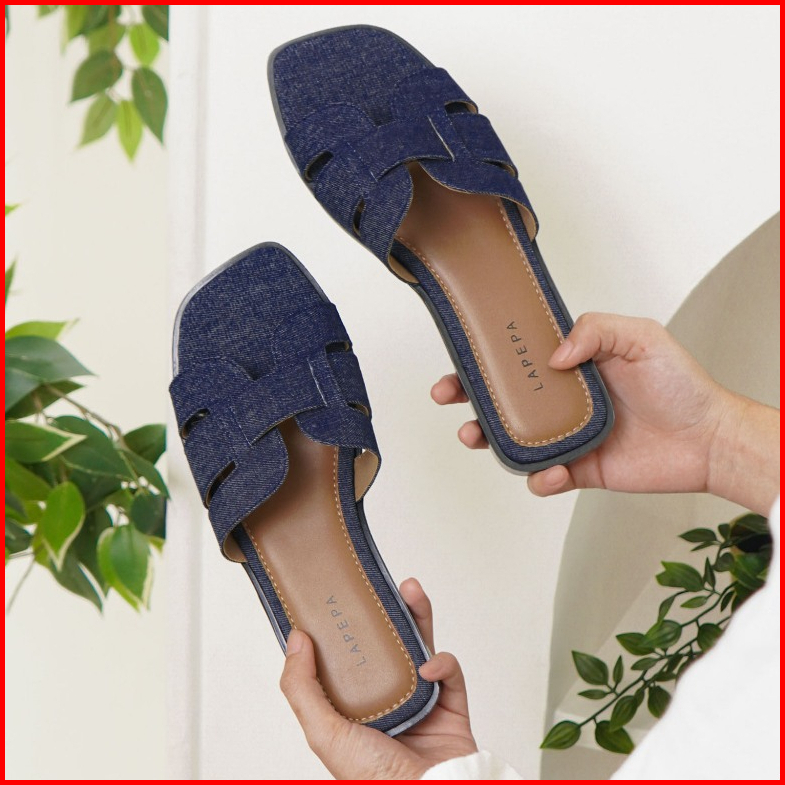 Lapepa Yuk - Kyra Sandal Wanita Teplek Korea Casual Size 36 - 40 Sendal Slop Empuk Flat Cewek Kasual Rumahan Warna Hitam