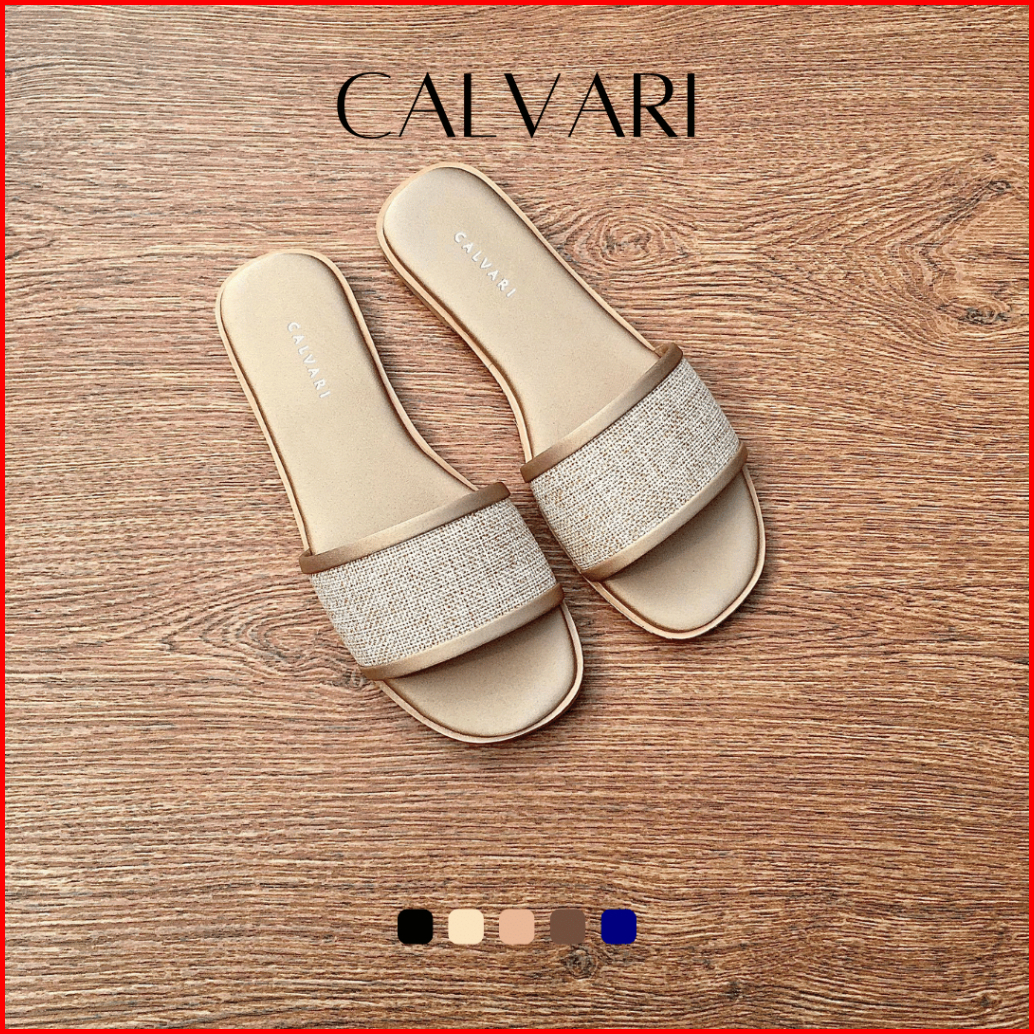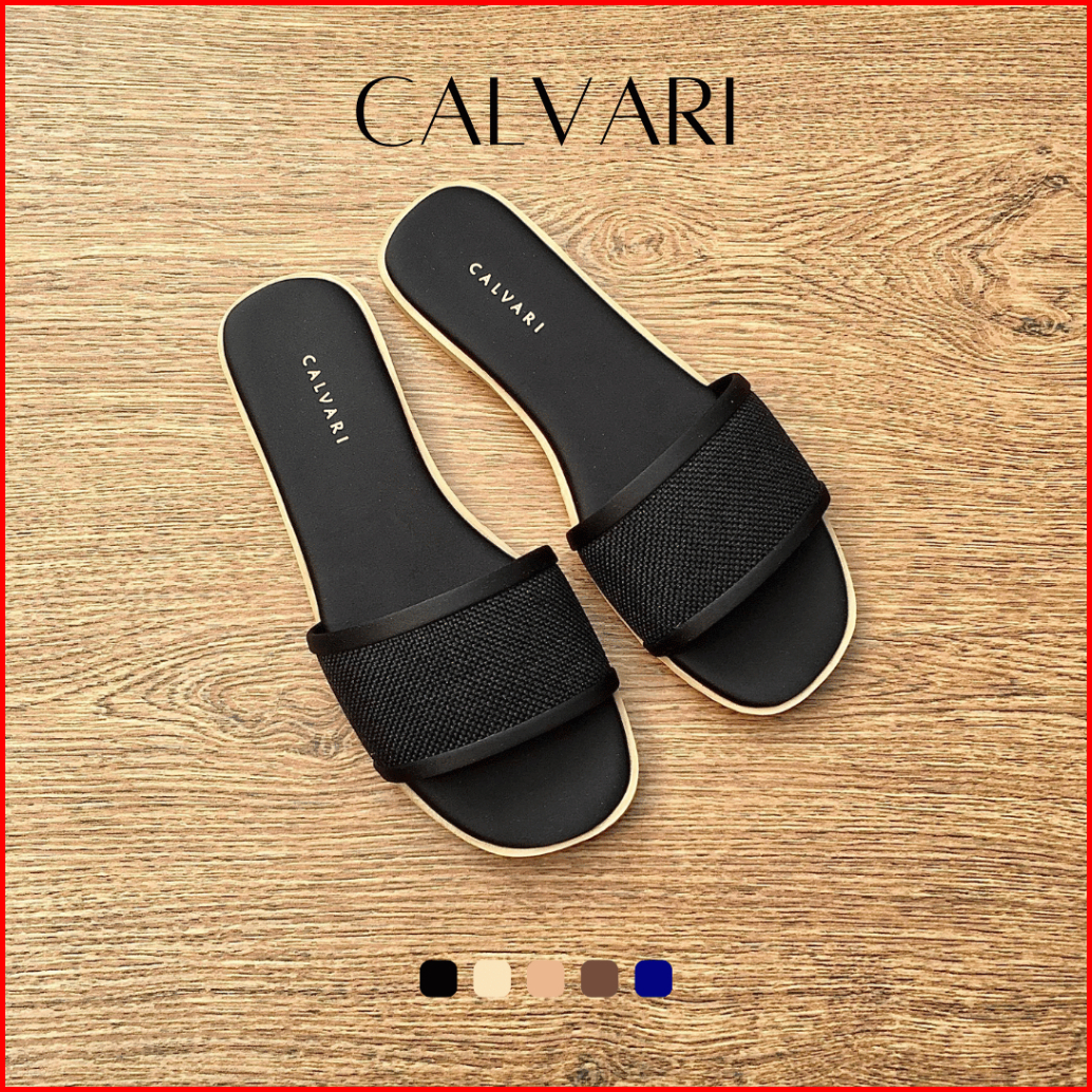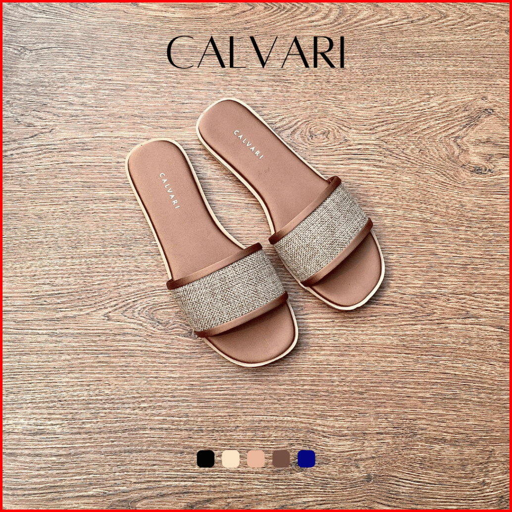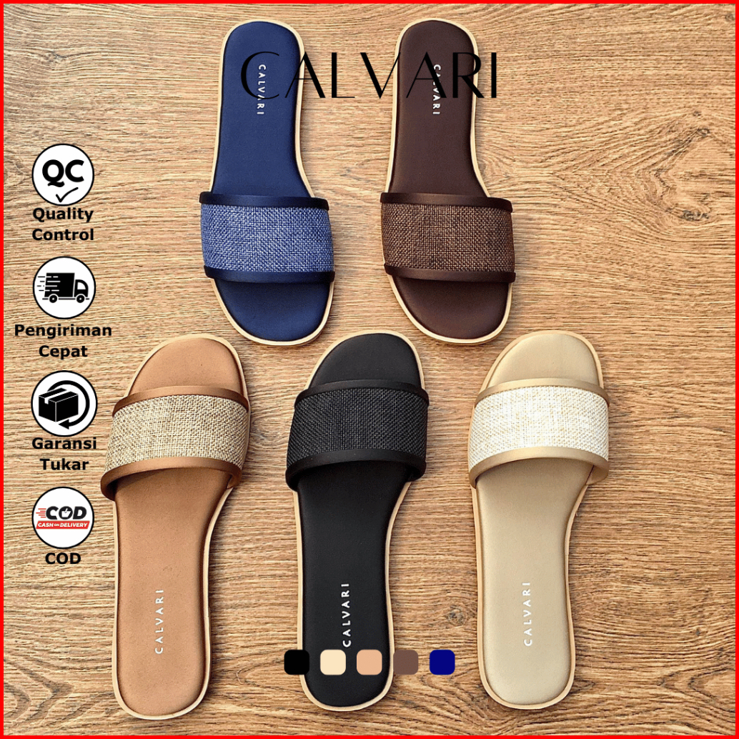 Calvari - Natsu Sandal Wanita Korea Teplek Casual Kekinian Size 36 - 40 Sendal Flat Cewek Kasual