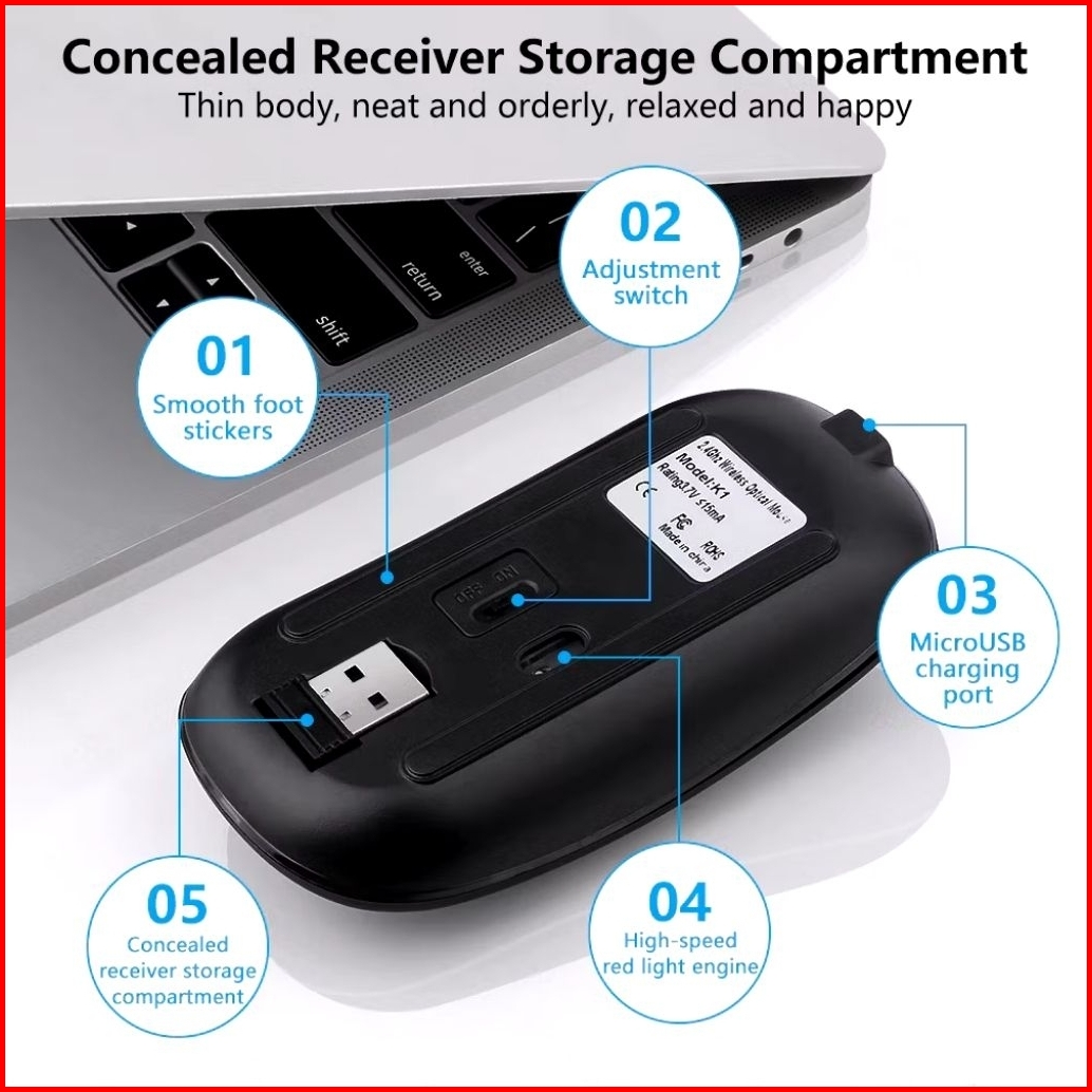 Sks Q14 Mouse Bluetooth Dan Wireless Android Ios Laptop Pc Windows Mac Macbook Recharger Isi Ulang Baterai